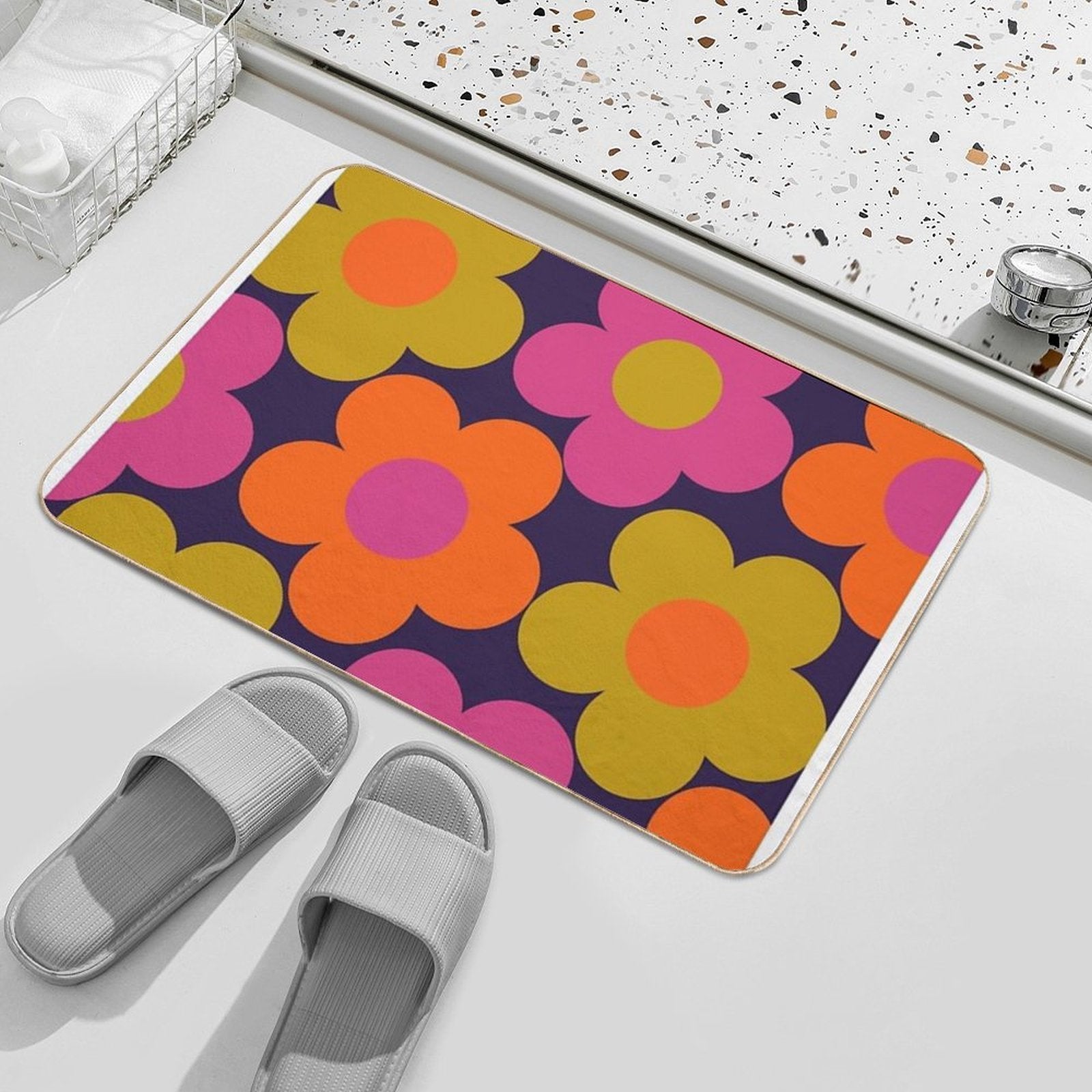 60s Style Neon Flowers Rapid-Drying Bath Mat