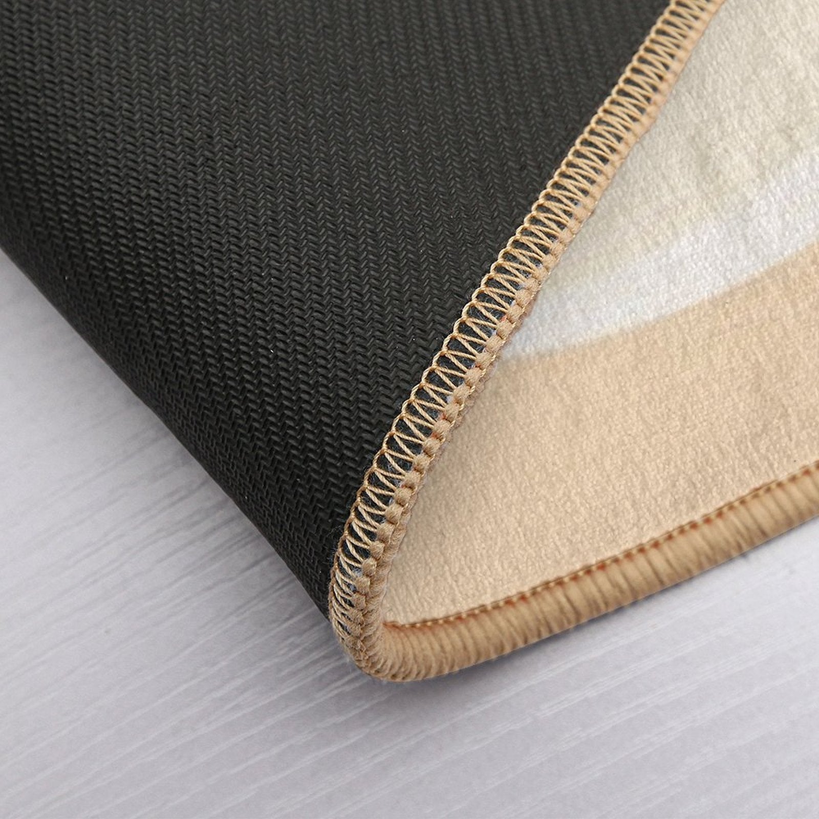 - Non-slip rubber backing grips floors securely, ideal for A Design of A Pattern Where Waves Meet The Sandy Shore, Incorporating Beige And Blue Tone. Mat placements on tiles, wood, or marble.