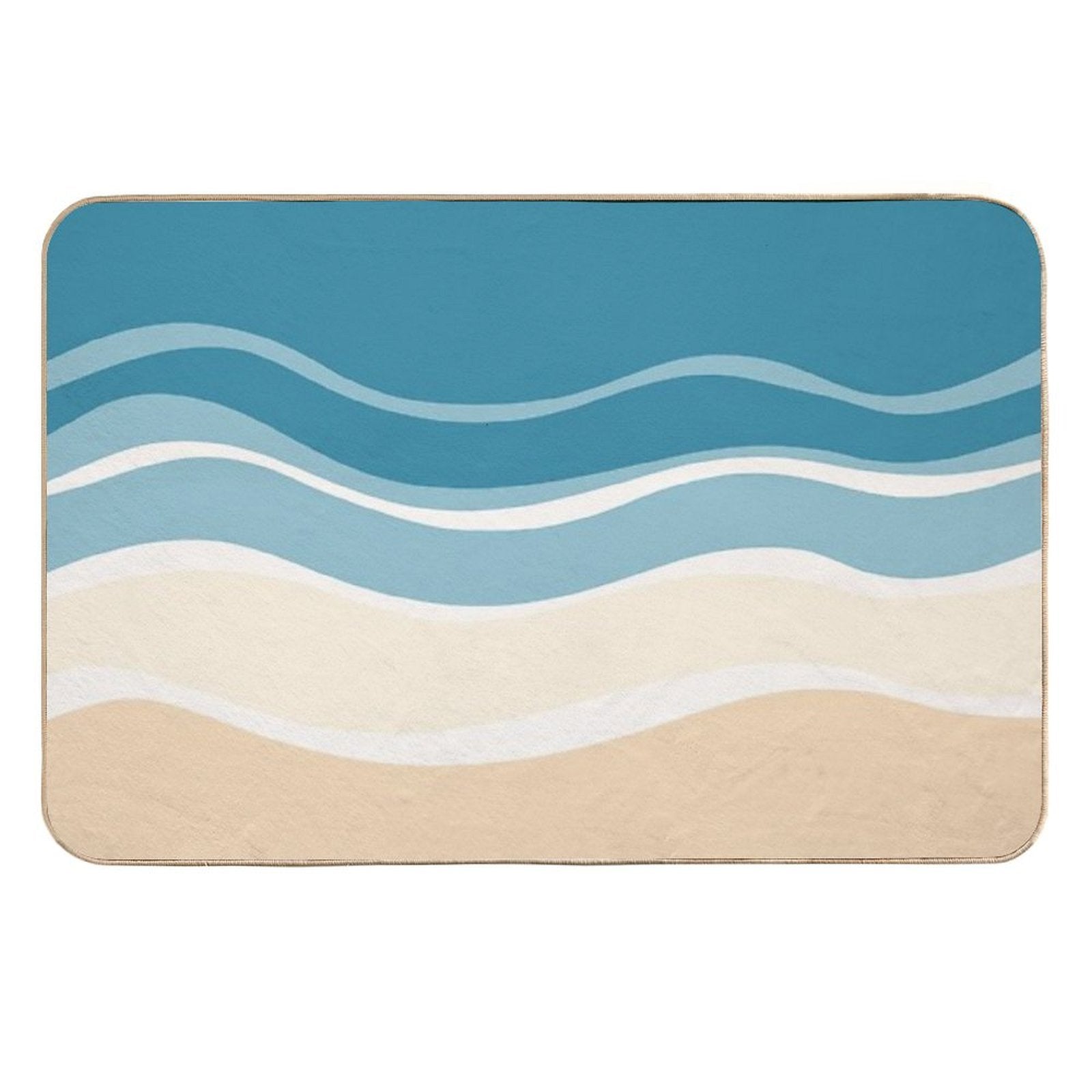 - Rapid-drying flannel soaks up water 3x faster than standard mats, preventing puddles in A Design of A Pattern Where Waves Meet The Sandy Shore, Incorporating Beige And Blue Tone. bathrooms or poolside areas.