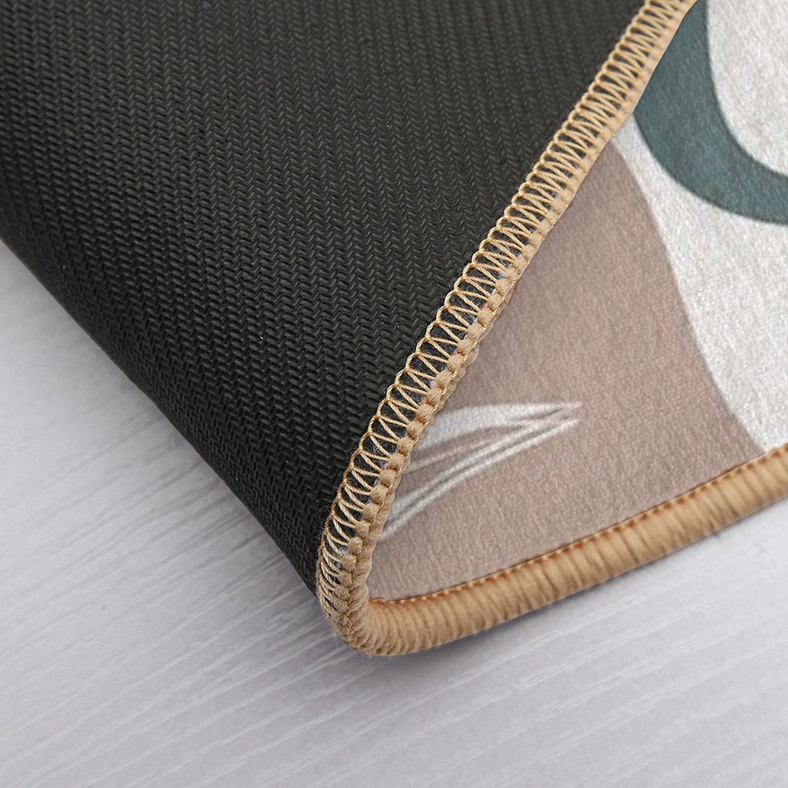 ✔️ Longevity Guaranteed: Resists fraying, peeling, and flattening – a true Abstract - Aqua And Beige Shapes, Lines And Leaves Mat investment.