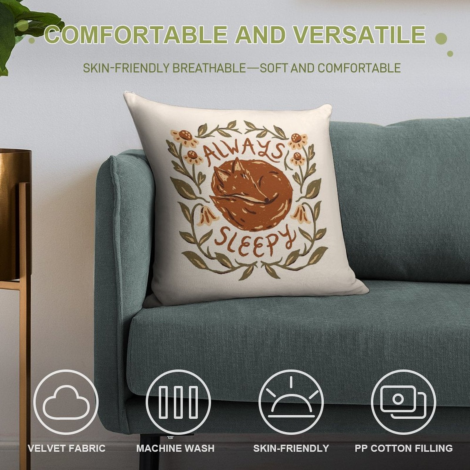Always Sleepy Fox Soft Shrink-Resistant Throw Pillow
