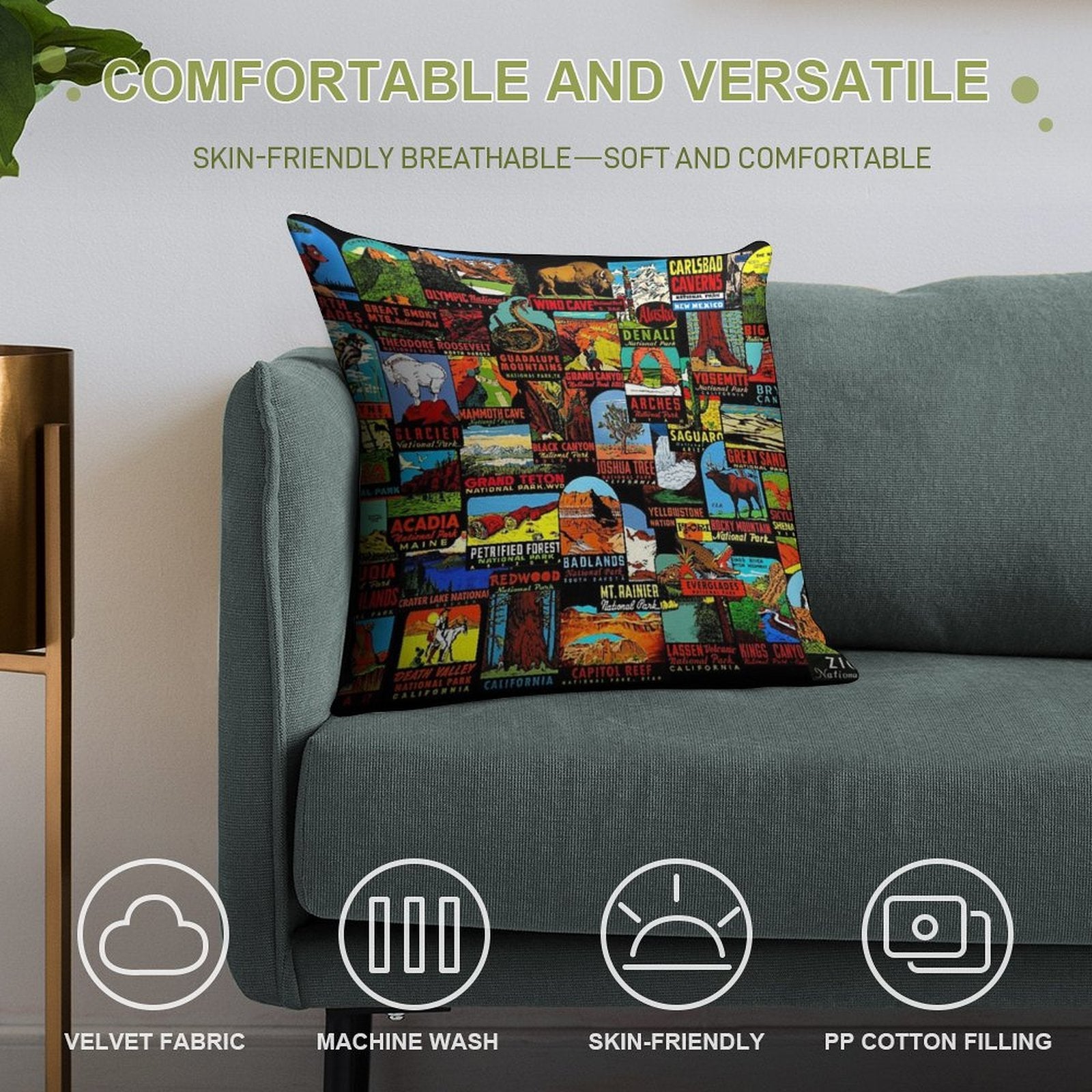 ✔️ Fits Any Style – Neutral tones and plush texture suit all American National Parks Vintage Travel Decal Bomb decors.