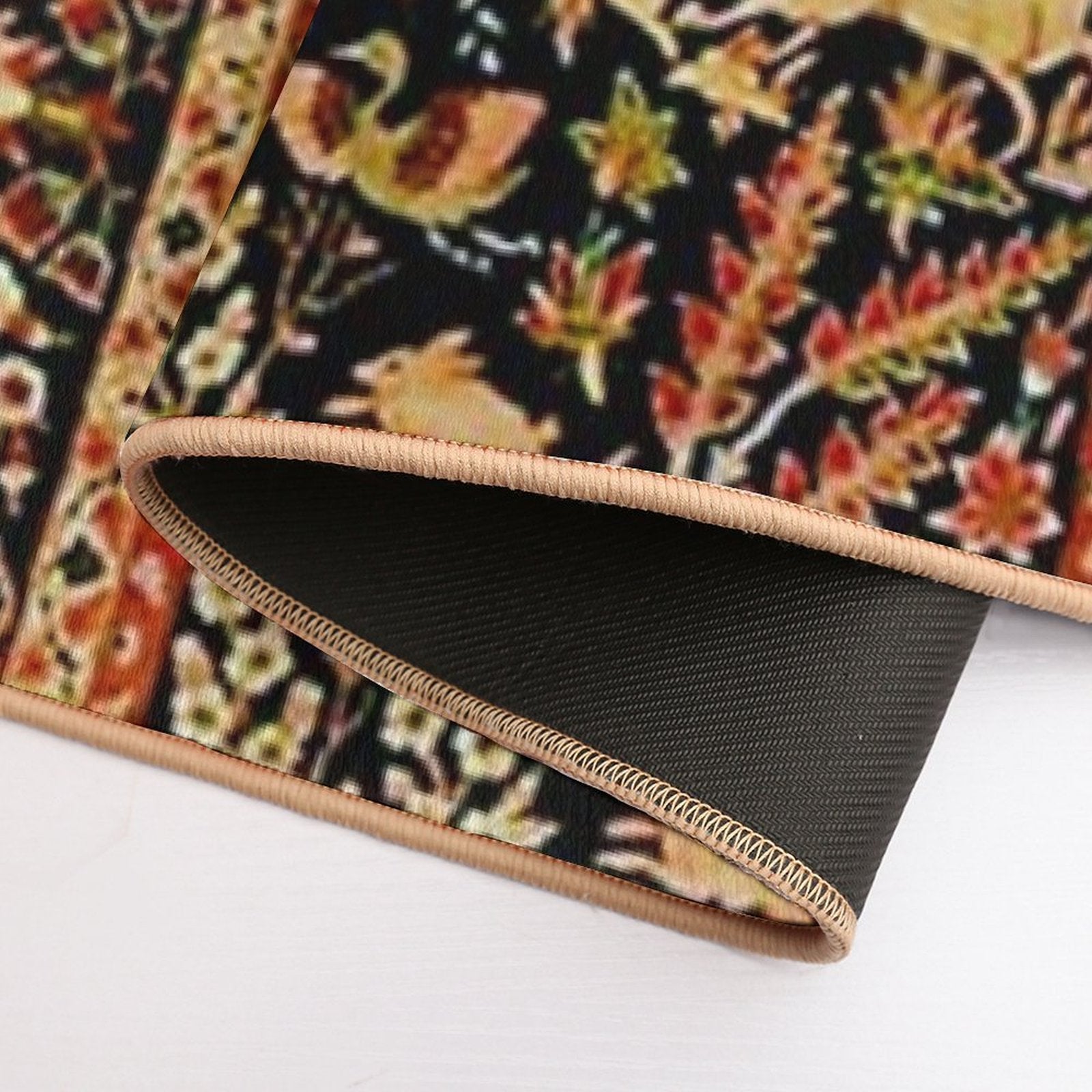 - Non-slip rubber backing grips floors securely, ideal for Antique Floral Persian Carpet with Animals Print Mat placements on tiles, wood, or marble.