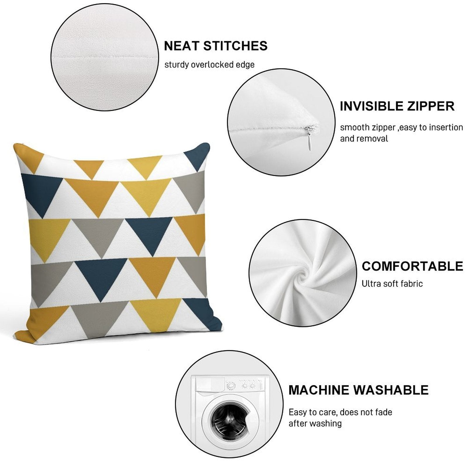 - Reinforced stitching along the edges prevents fraying and extends the life of your Arrows Light Mustard Yellow, Dark Mustard Yellow, Dark Blue, Grey, And White Geometric Pattern Pillowcase.