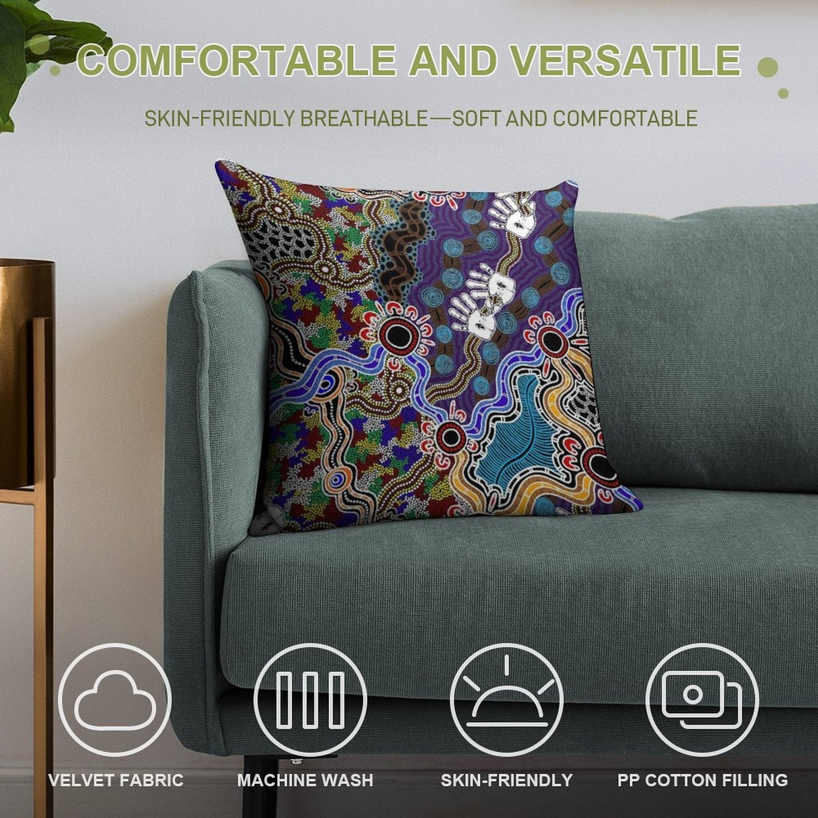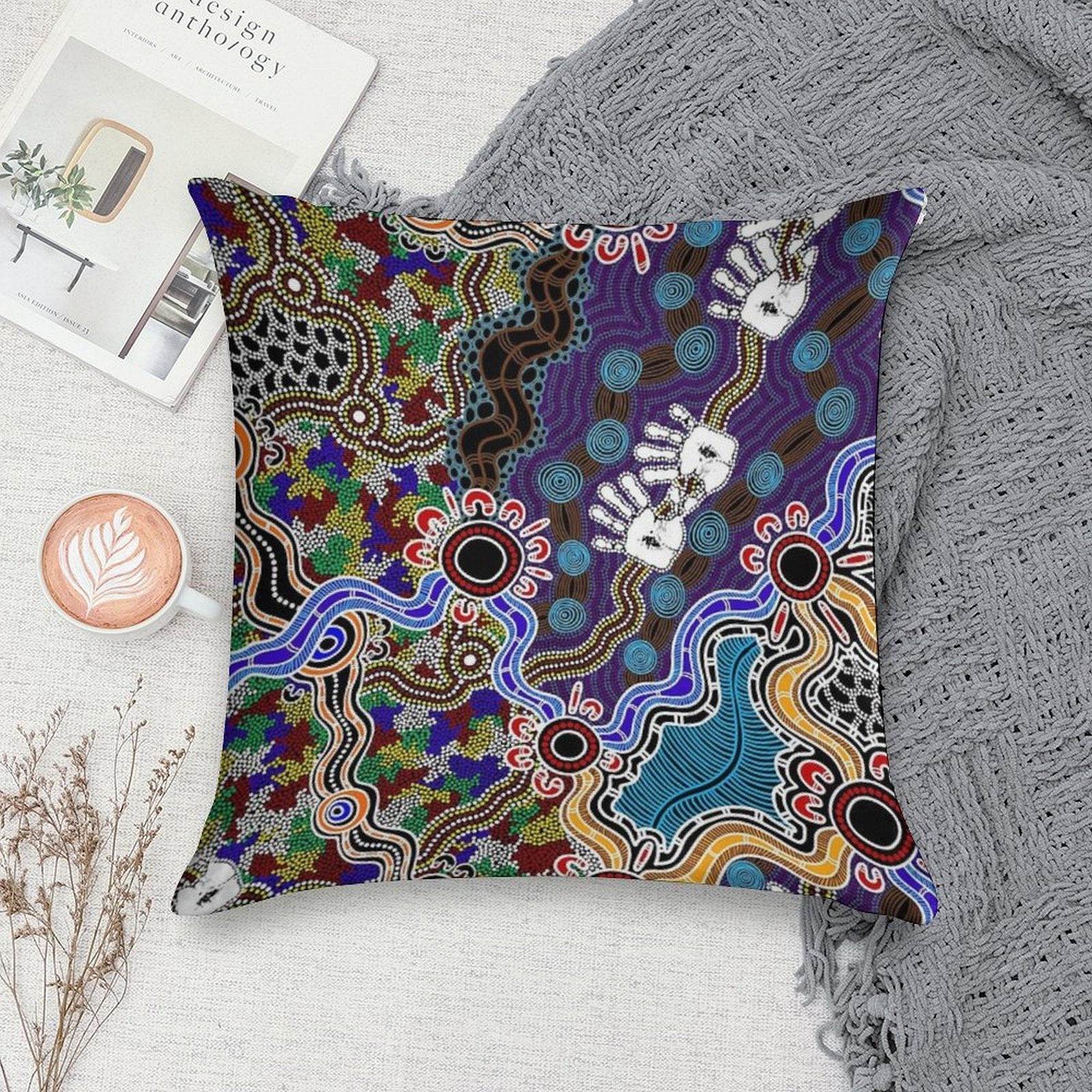 Authentic Aboriginal Art - Discovering Your Dreams Soft Durable Construction Throw Pillow