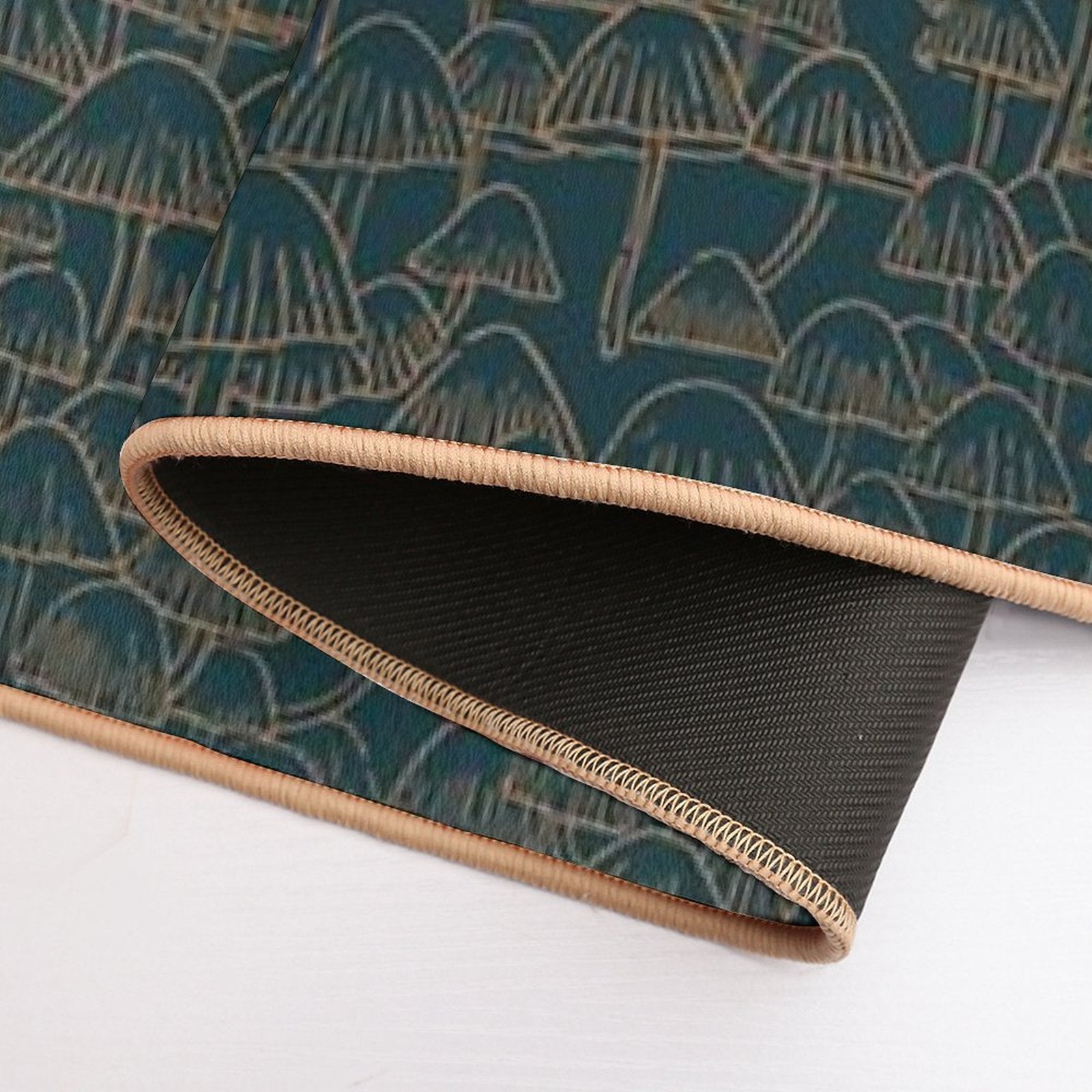 - Non-slip rubber backing grips floors securely, ideal for Autumn Mushrooms Gold Green Mat placements on tiles, wood, or marble.