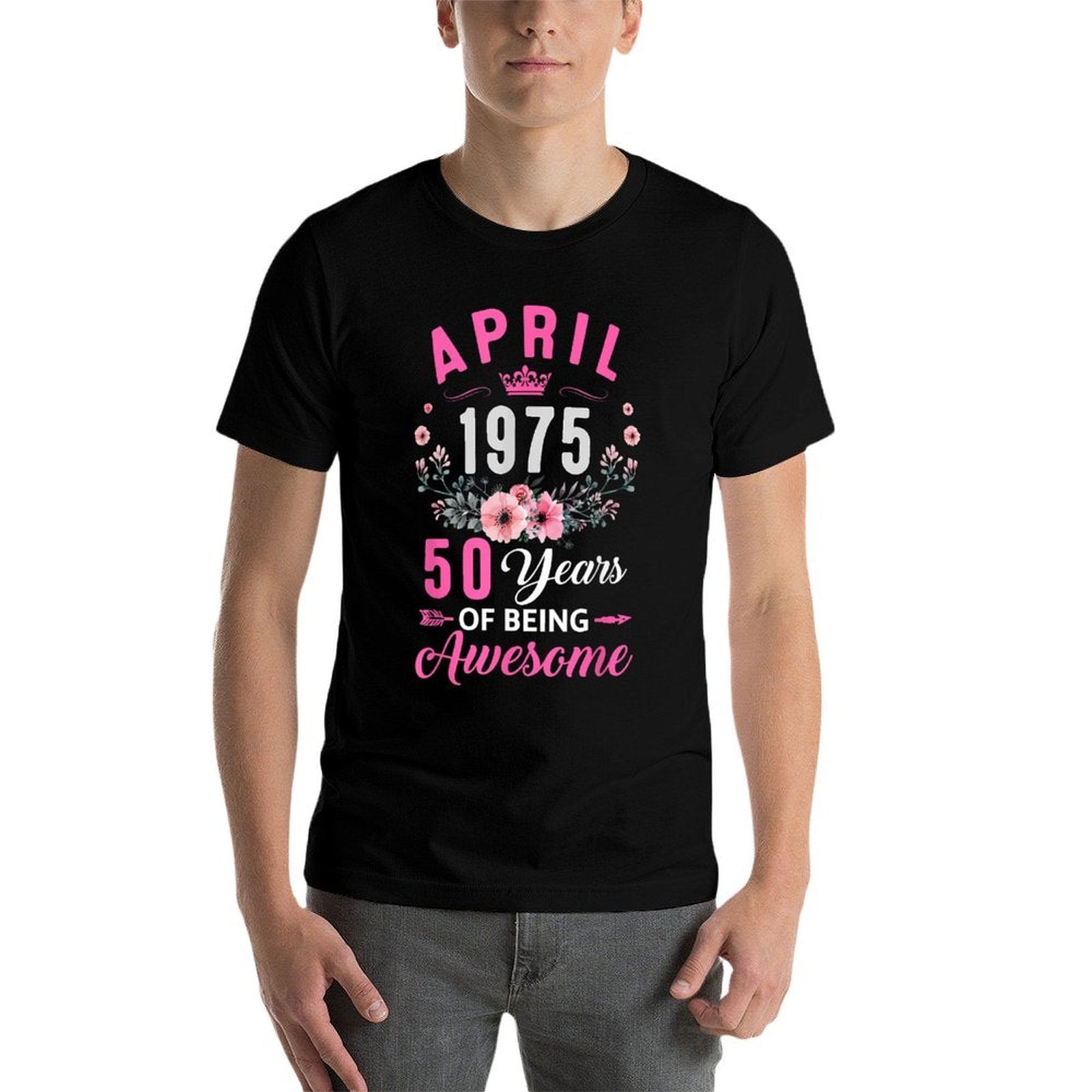 - Care Reminder: Skip soaking and bleach to extend your Awesome Since 1975 50 Years Old April 50Th Birthday Women tee’s lifespan.