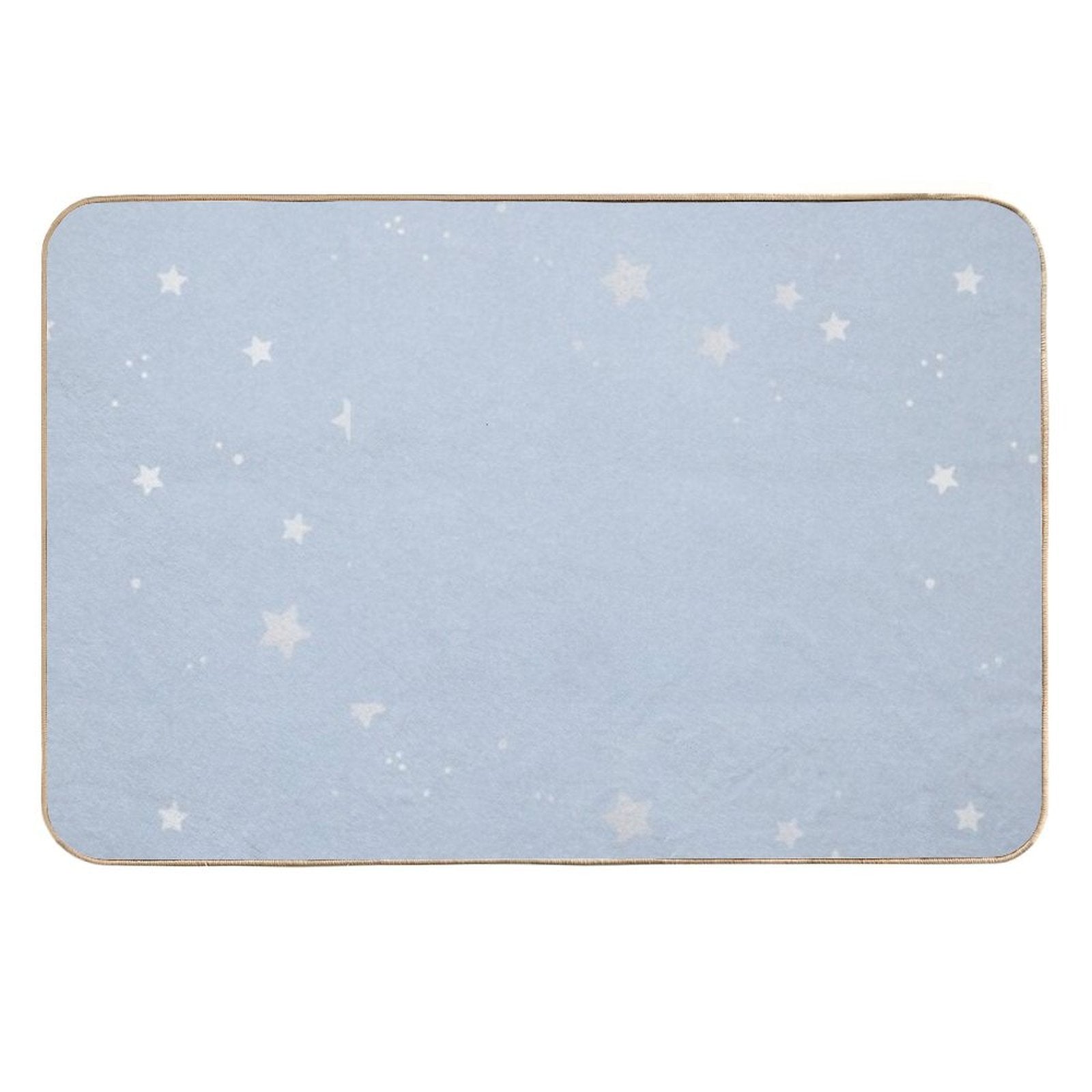 - Non-slip rubber backing grips floors securely, ideal for Baby Blue Silver Stars Mat placements on tiles, wood, or marble.