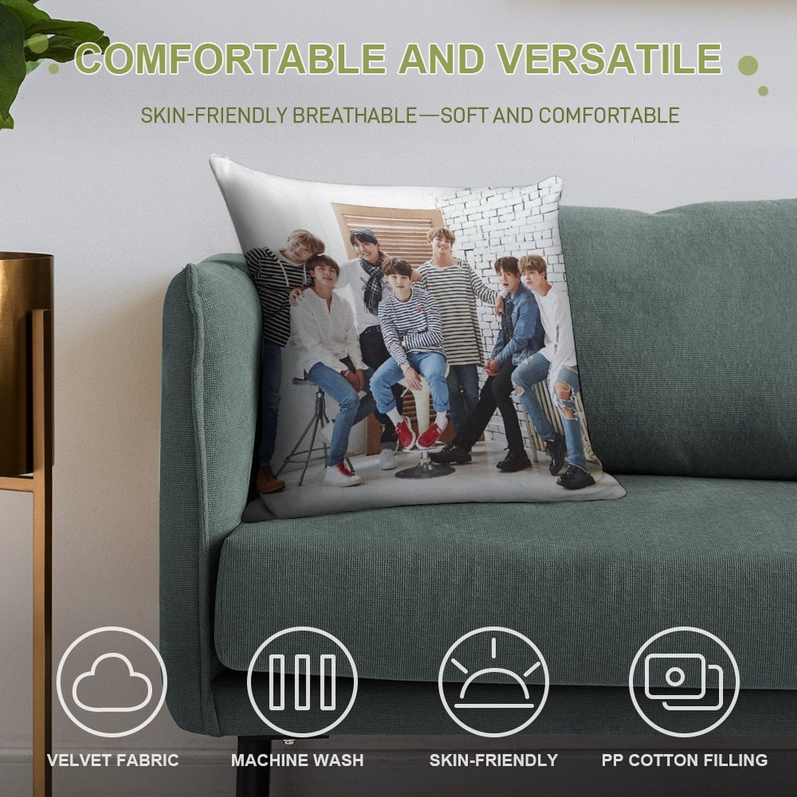 BANGTAN BOYS OT 7 Soft Bedroom Essential Throw Pillow