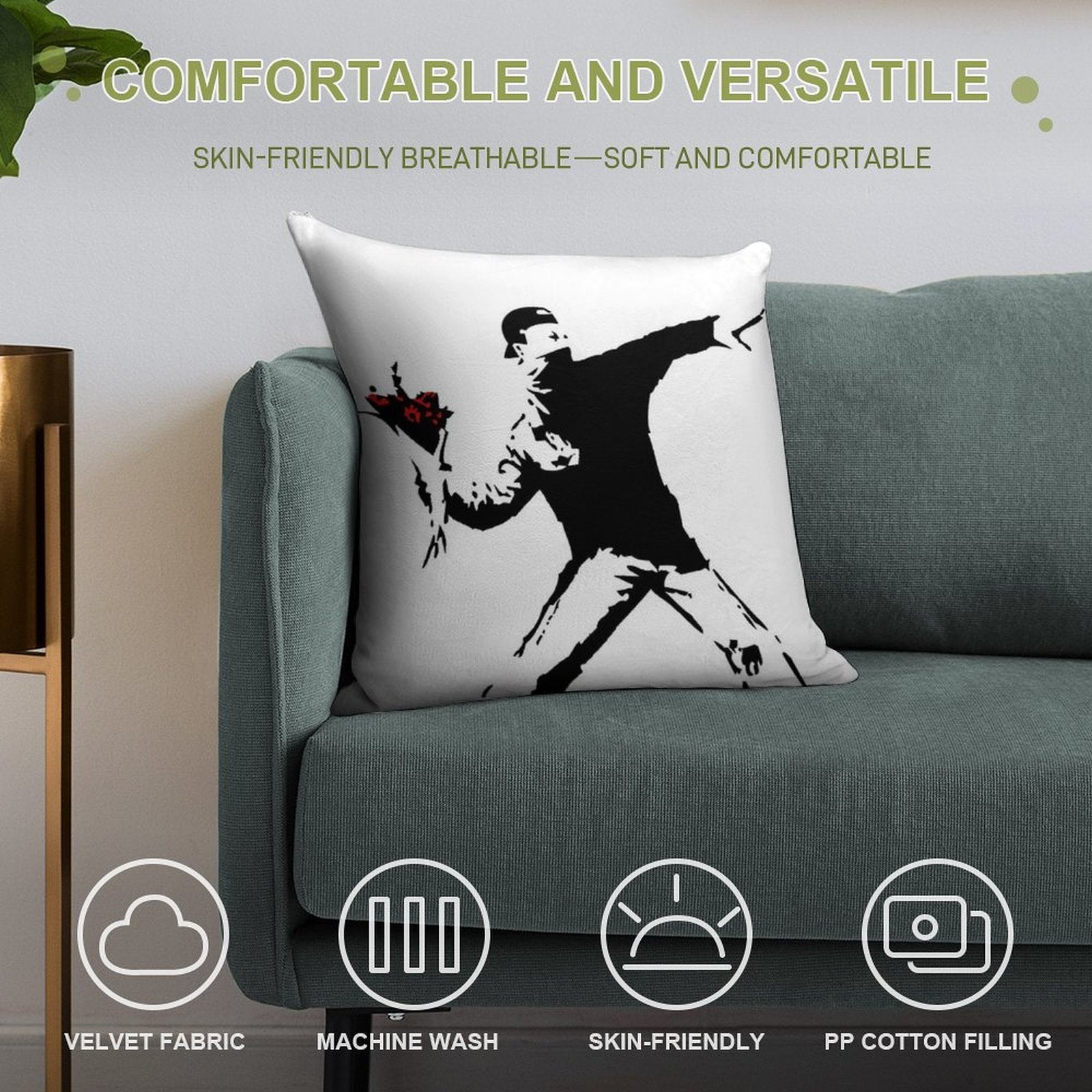 Banksy Flower Thrower! Soft Washable Throw Pillow