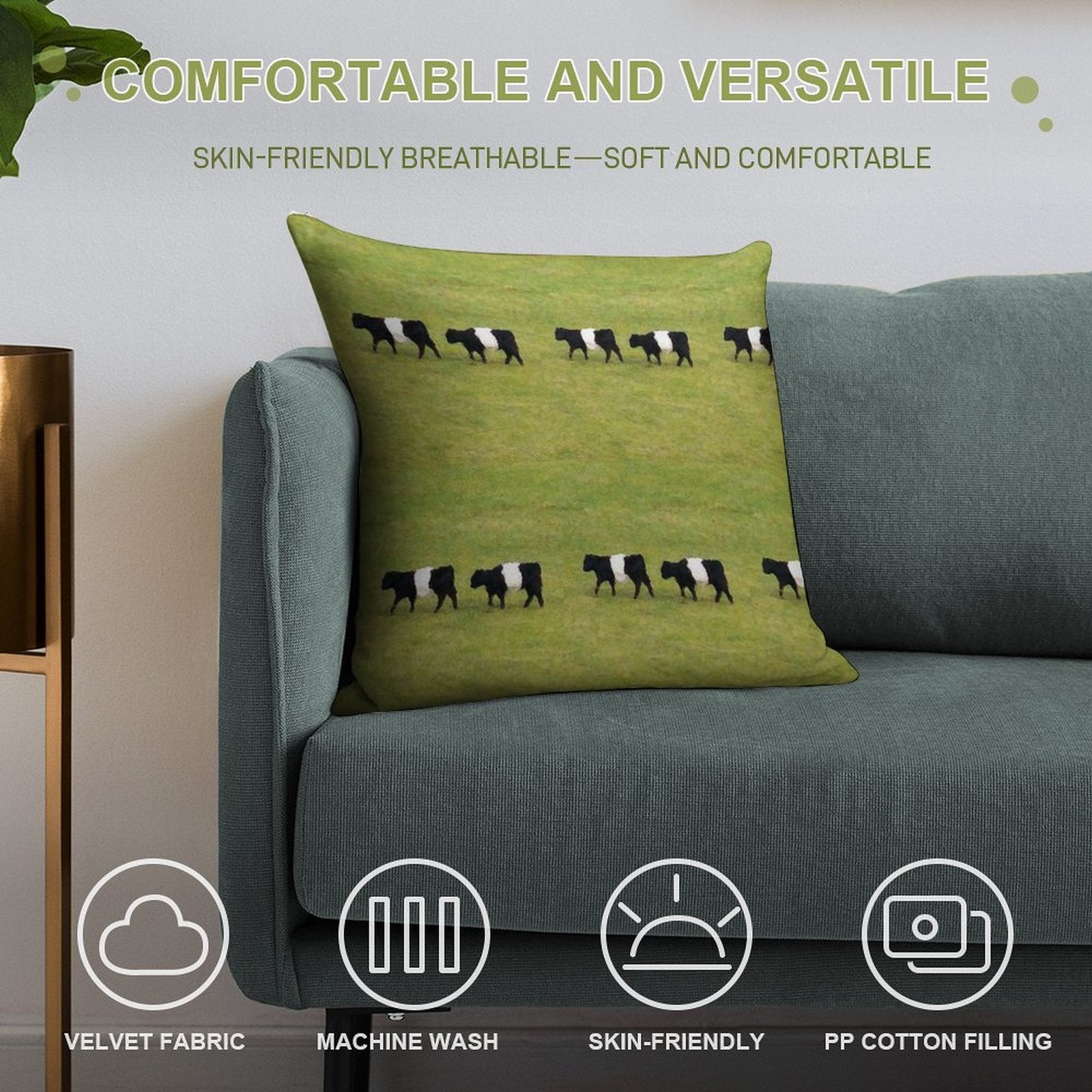 Belted Galloway Cows Soft Short Plush Fabric Throw Pillow