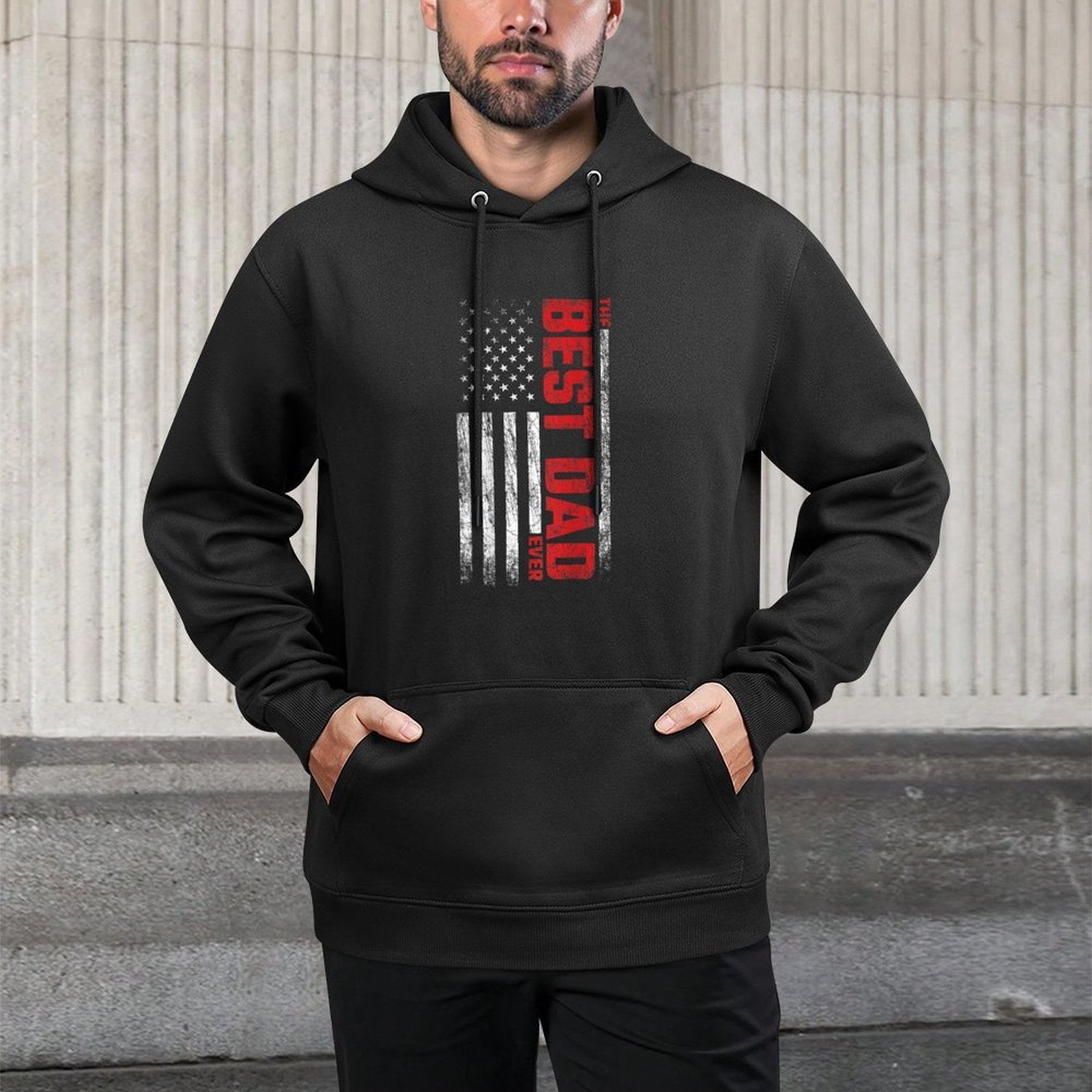 Best Dad - American On Back - Best Dad Ever Cotton-Polyester Blend Hoodie