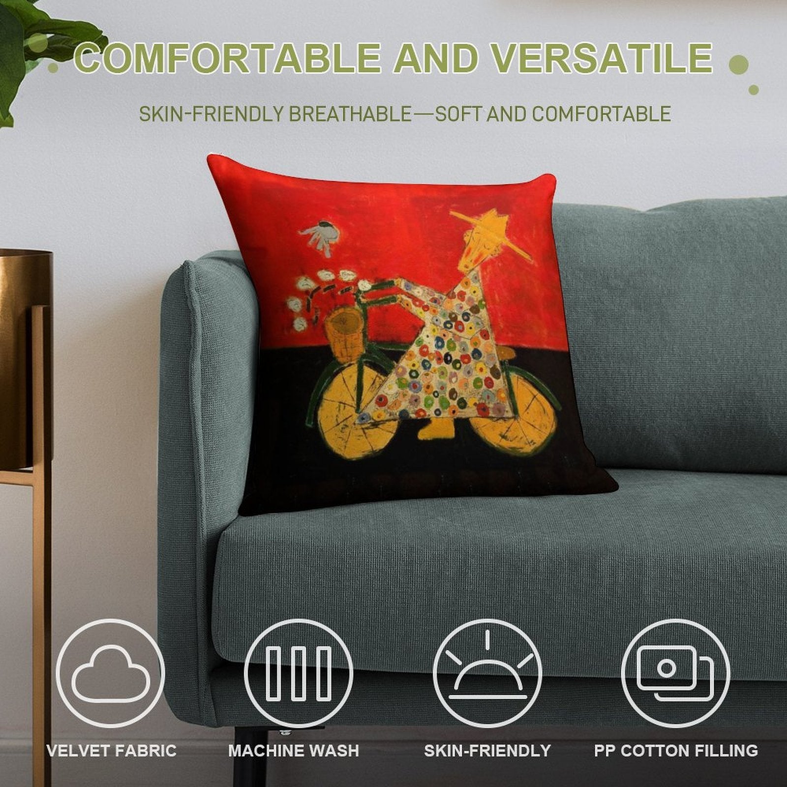 Bicycle Monk And Bluebird Soft Style Accent Throw Pillow