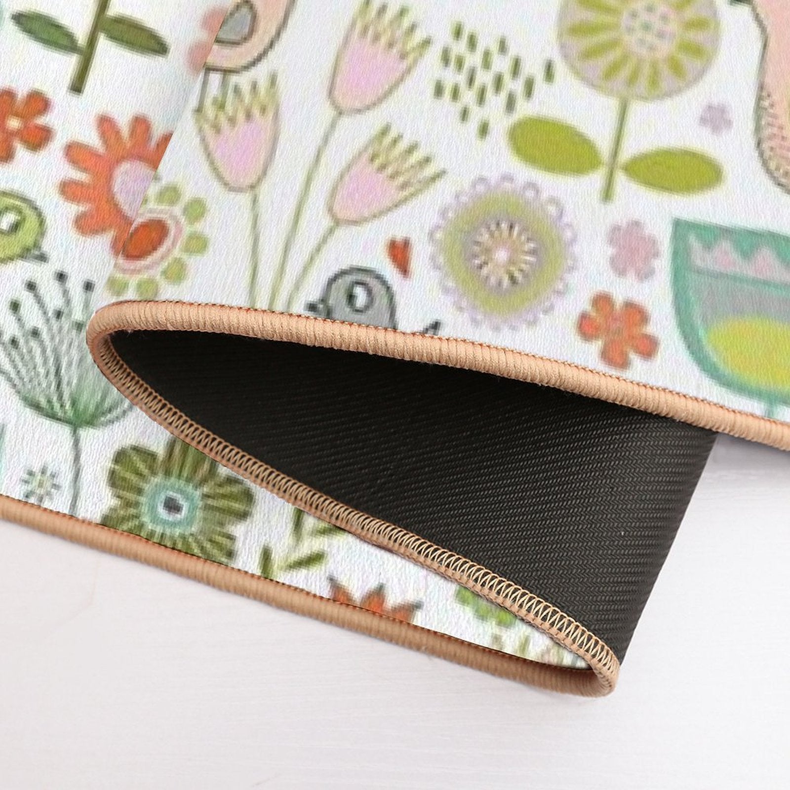 - Non-slip rubber backing grips floors securely, ideal for Birds And Blooms - Springtime - Pretty Floral Bird Pattern by Cecca Designs Mat placements on tiles, wood, or marble.