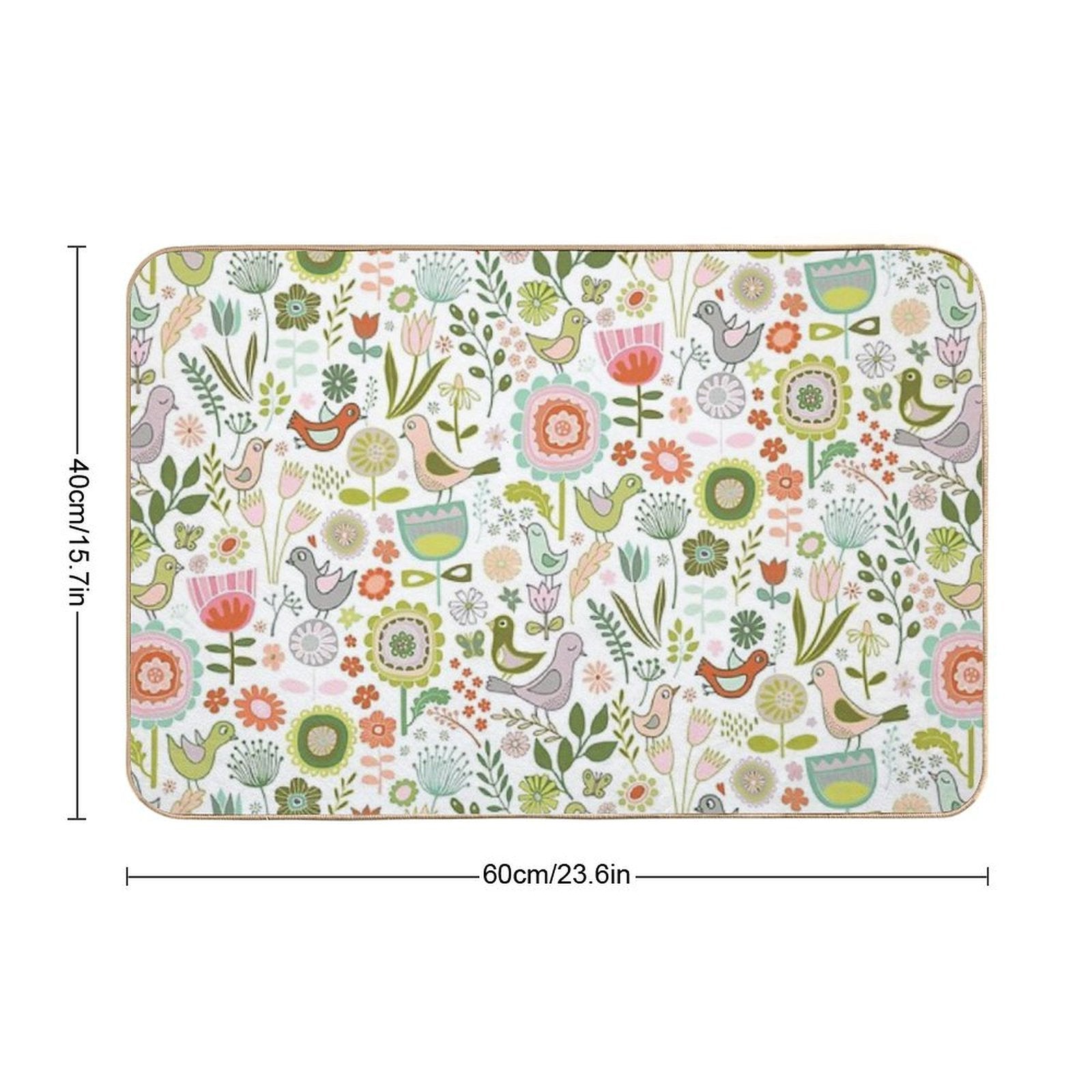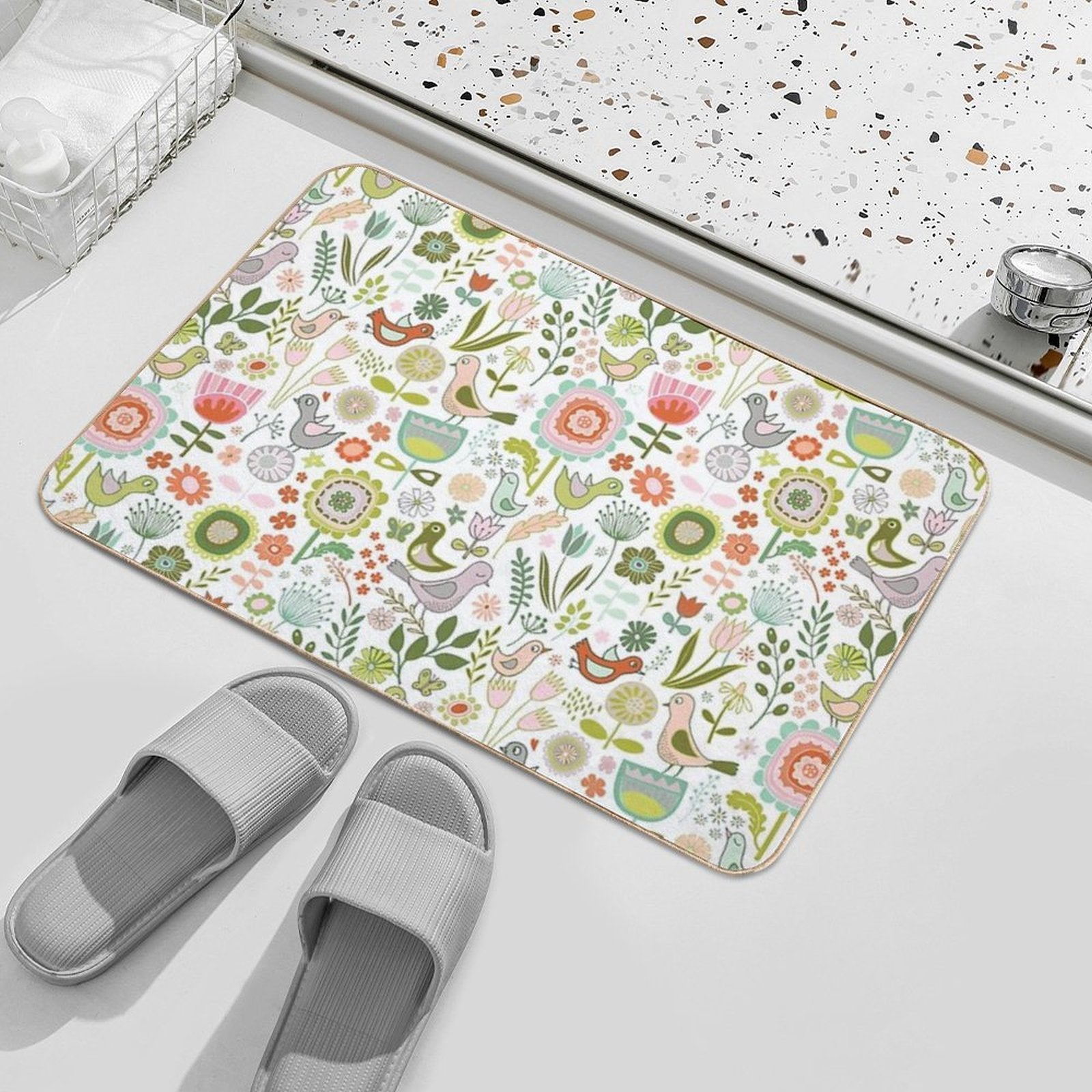 - Rapid-drying flannel soaks up water 3x faster than standard mats, preventing puddles in Birds And Blooms - Springtime - Pretty Floral Bird Pattern by Cecca Designs bathrooms or poolside areas.
