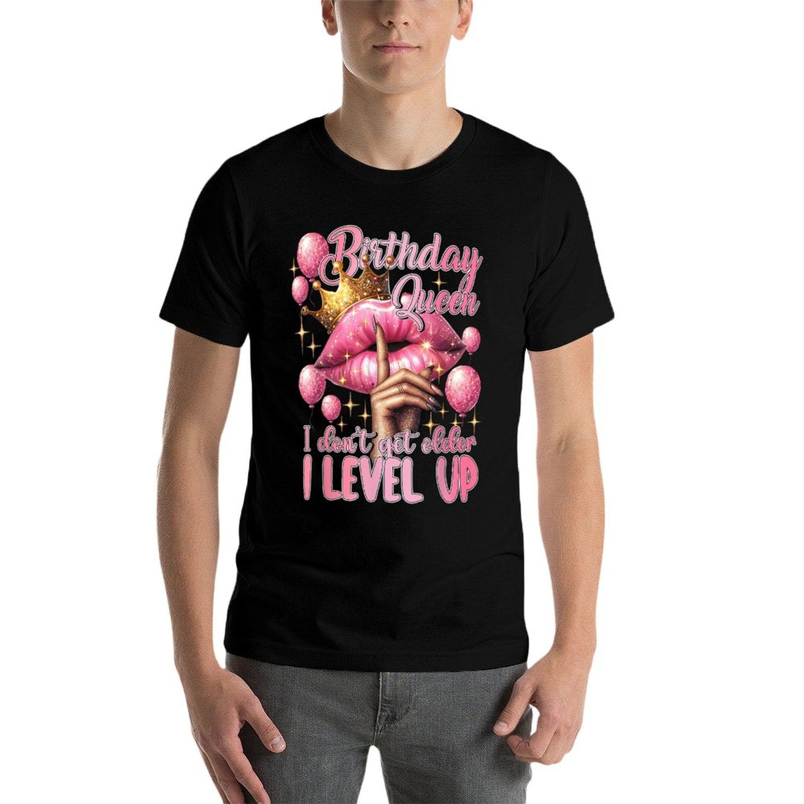 - Heat-transfer prints retain vibrant colors wash after wash, perfect for Birthday Queen I Don't Get Older I Level Up Lip Balloon casual outfits or statement streetwear.