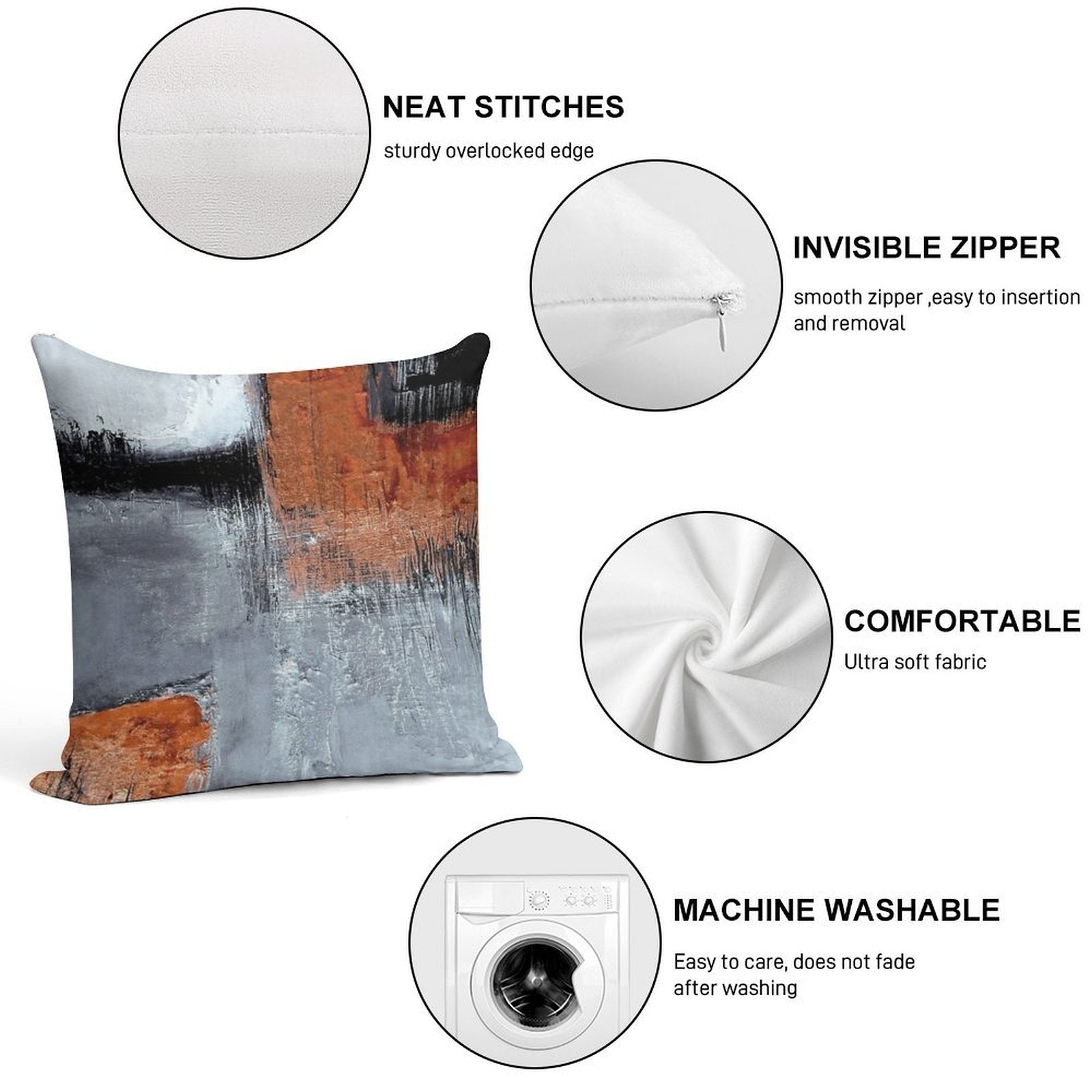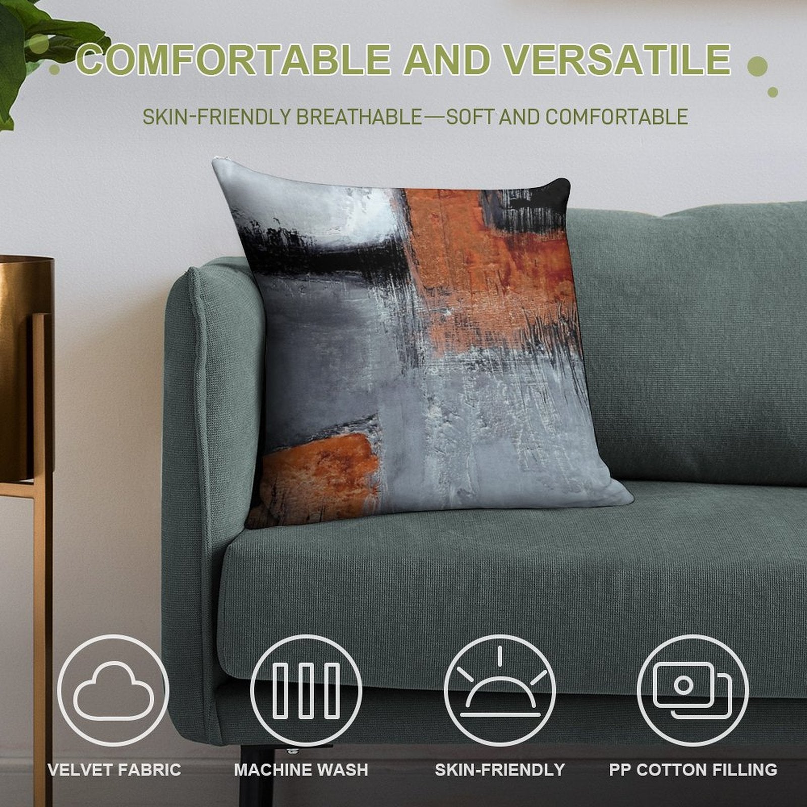 ✔️ Fits Any Style – Neutral tones and plush texture suit all Black Orange Abstract decors.
