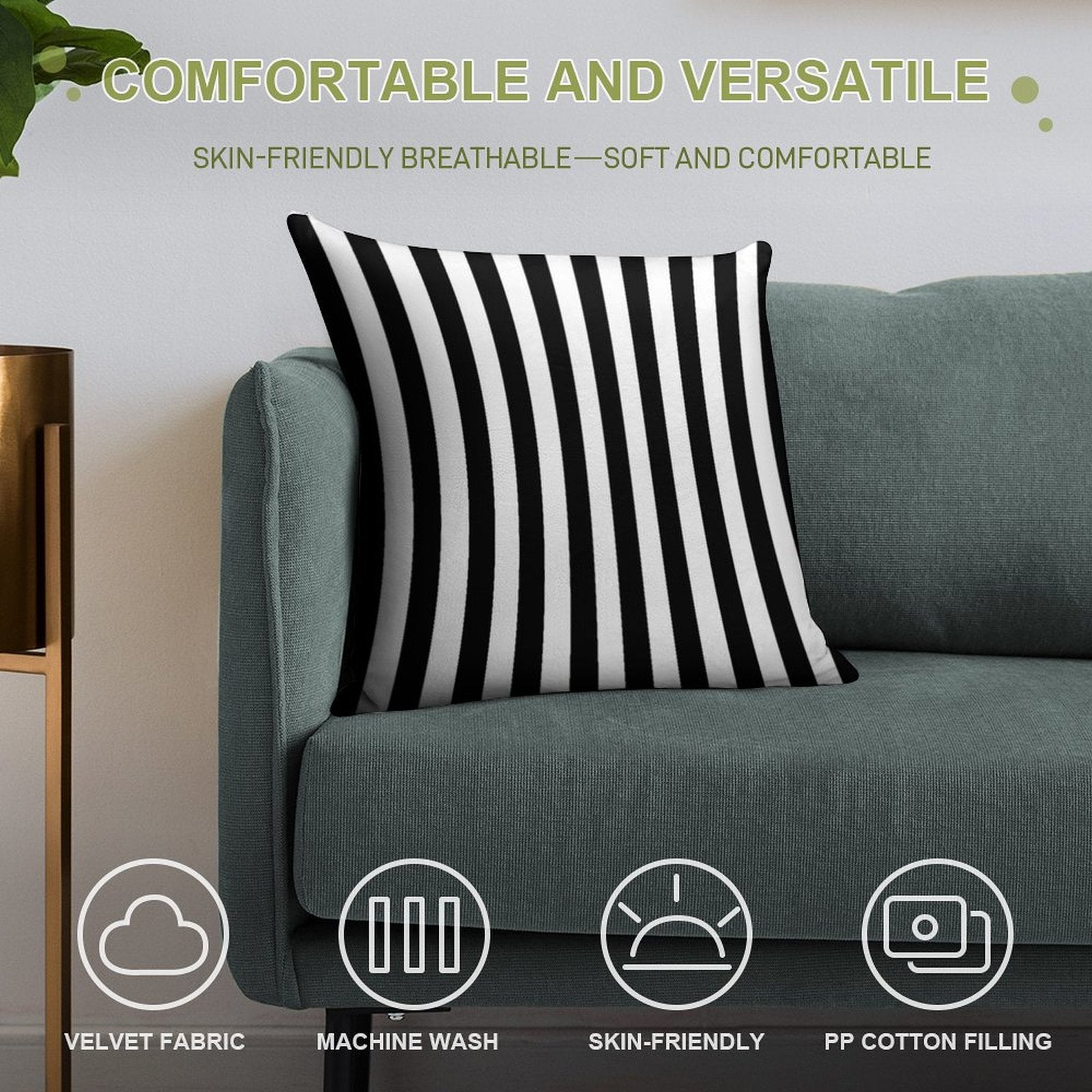 Black White Striped Pillow Cushion Cover Skirt Soft Warmth Comfort Throw Pillow