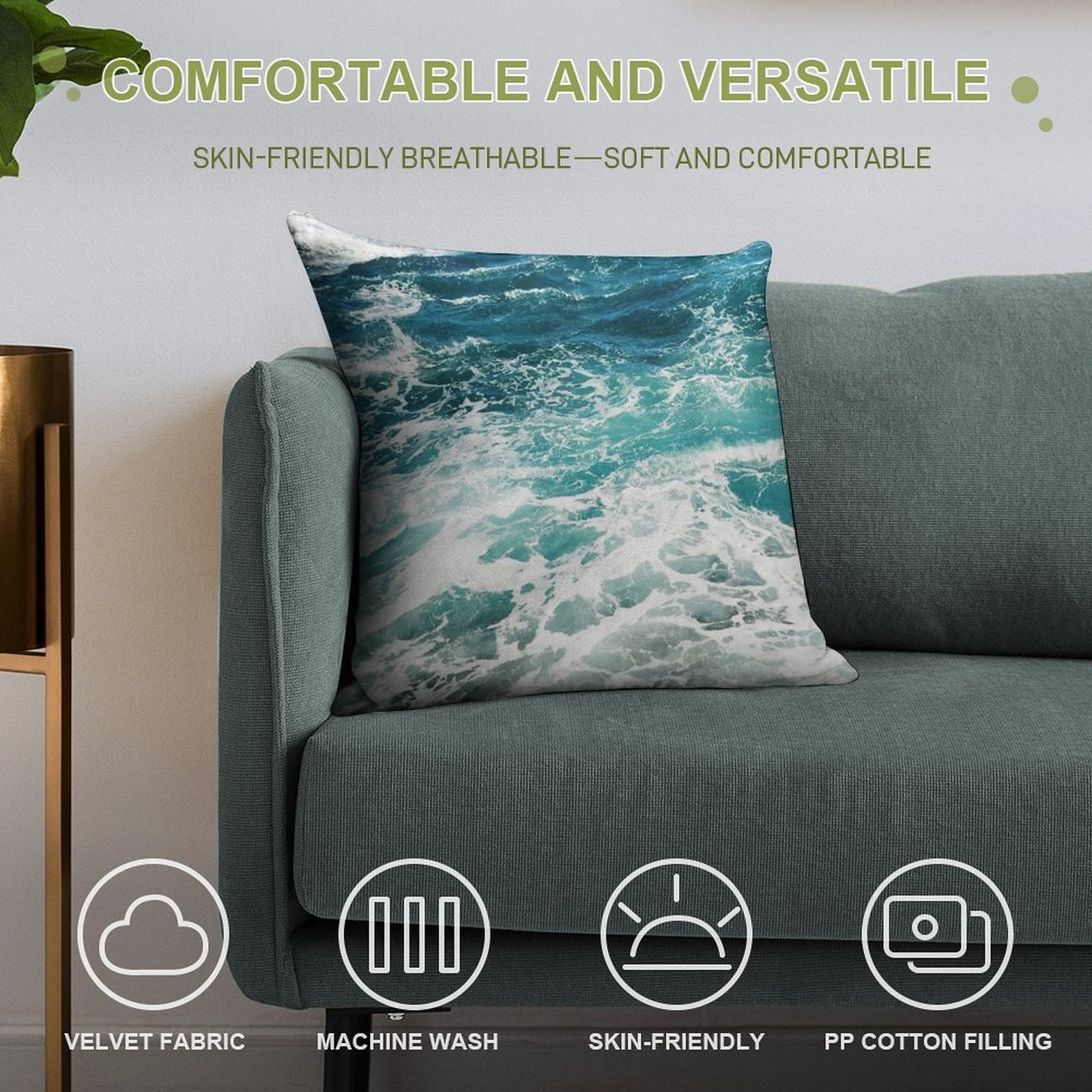 Blue Ocean Waves Soft Hidden Zipper Throw Pillow