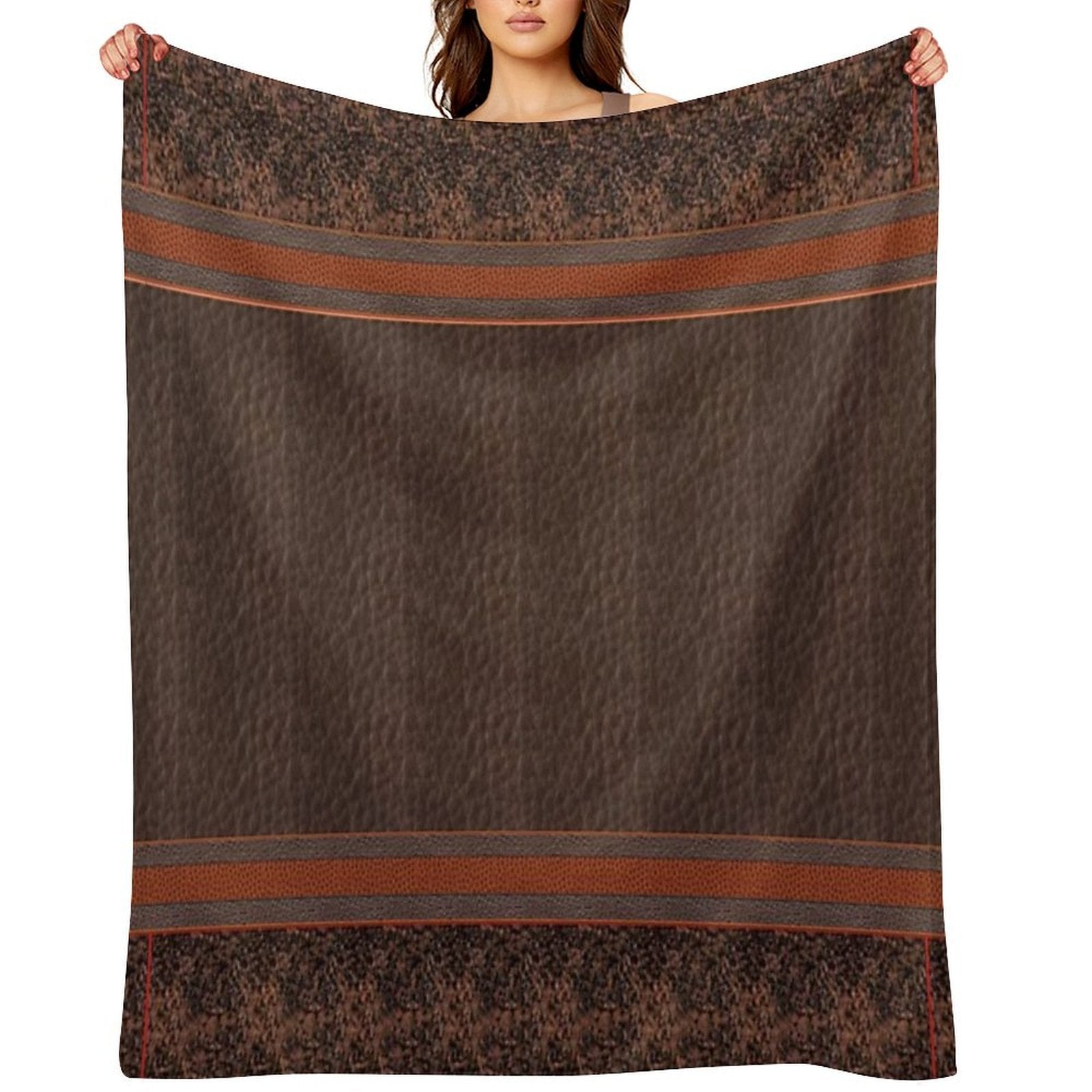 Brown Sweater Faux Vegan Leather Pattern Print Brown Bohemian Boho Thigh High Striped Top Socks Leggings Wrinkle-free Throw Blanket