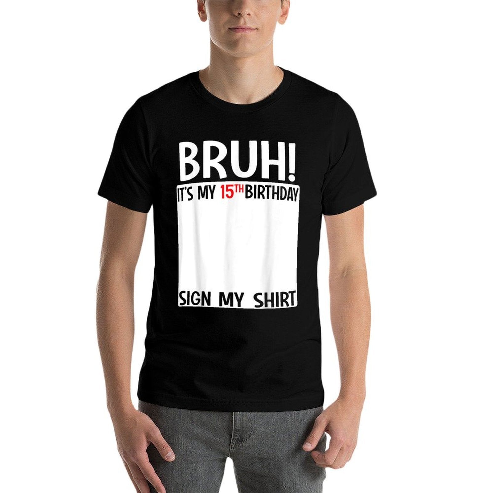 - Avoid bleach to preserve the Bruh It's My 15th Birthday Sign My 15 Years Old Bday T-shirt’s bold graphics and cotton integrity.