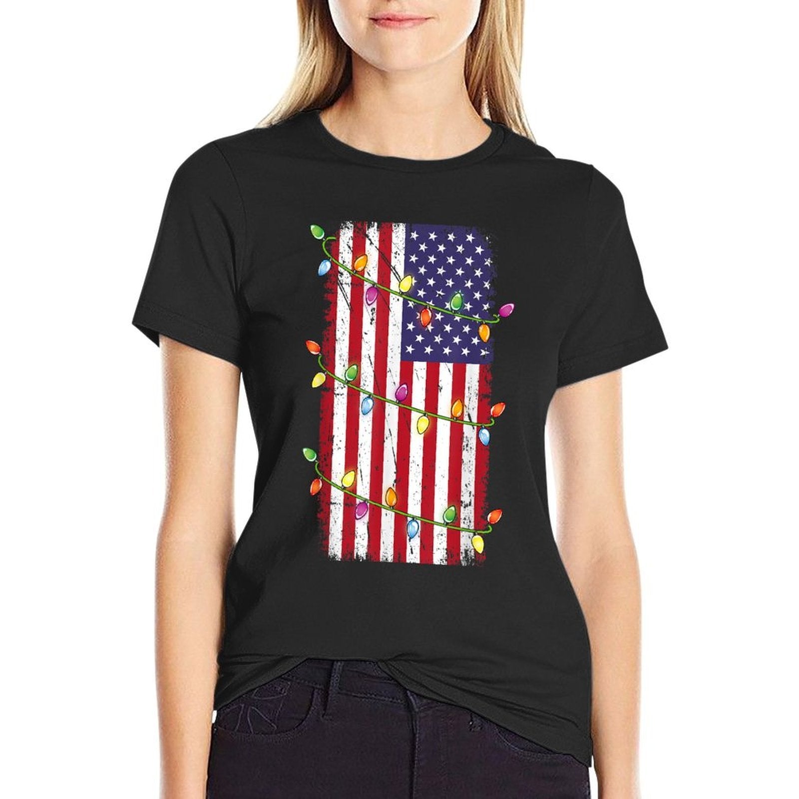 Christmas Lights USA Patriotic Veteran Christmas Tagless Design T-Shirt
