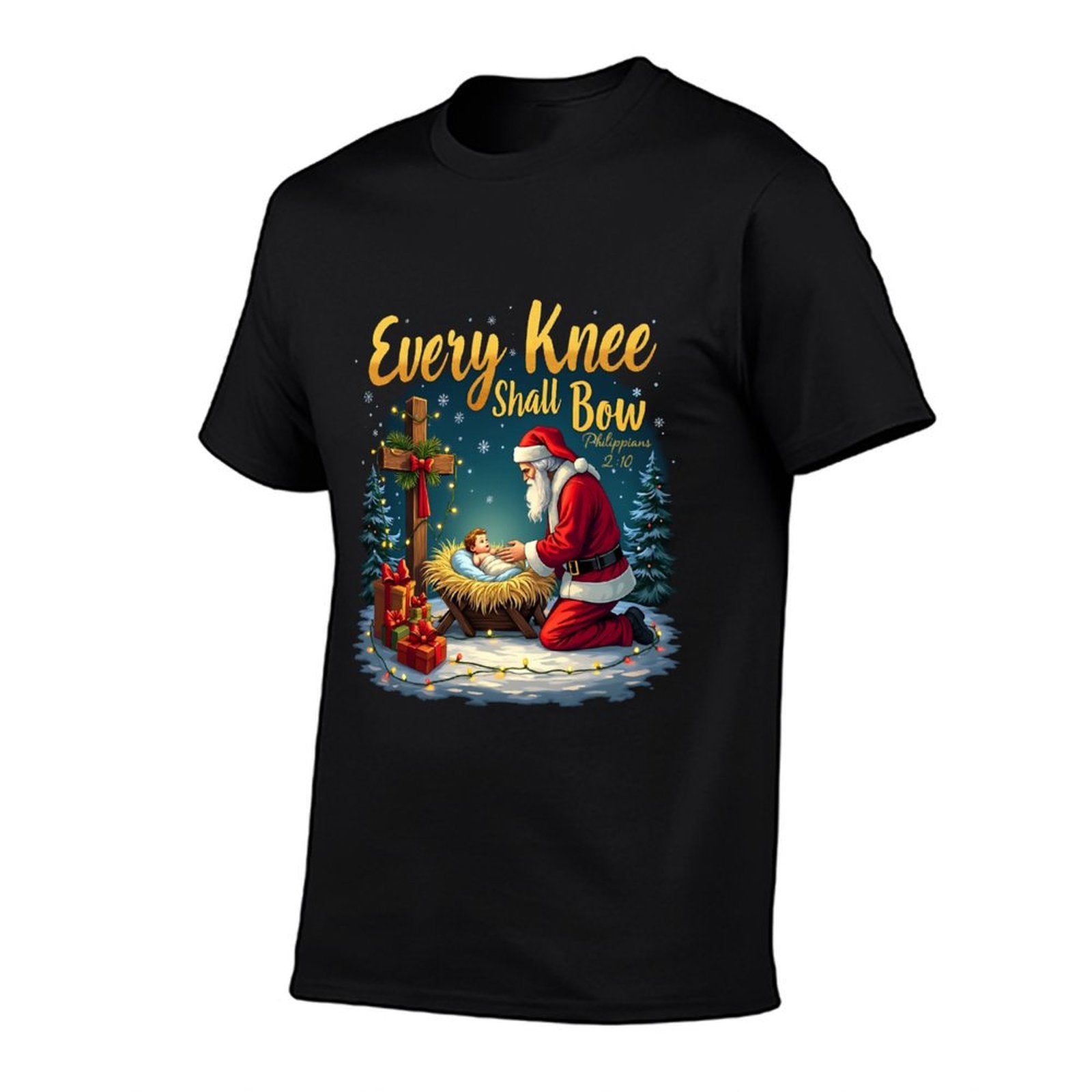 Christmas Nativity Scene Xmas Every Knee Shall Bow Santa Sweatshirt Trendy Pattern T-Shirt