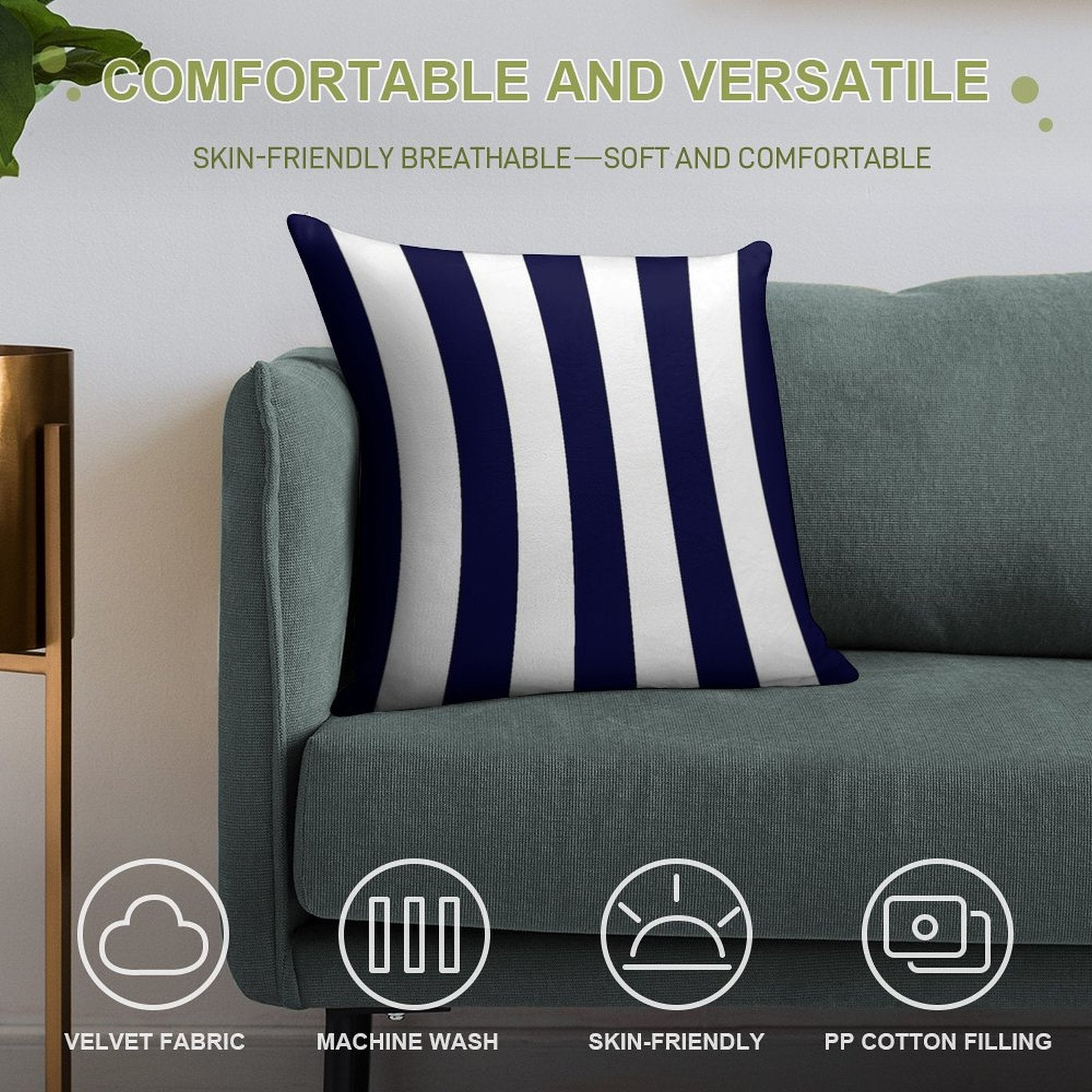 Classic Navy Blue And White Stripes Soft Gift Ready Throw Pillow