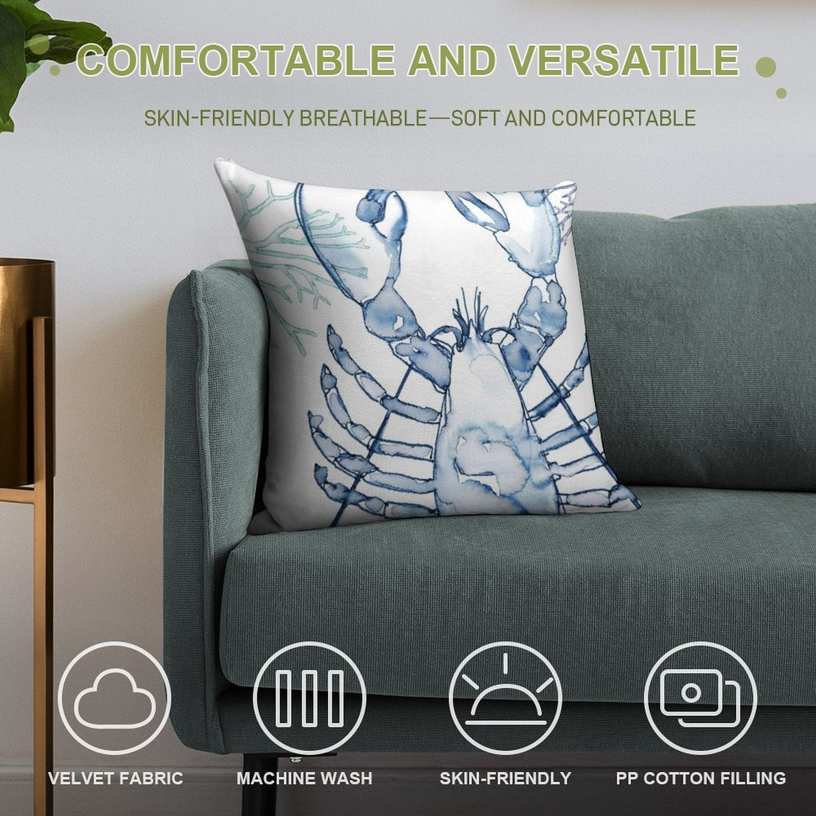 ✔️ Fits Any Style – Neutral tones and plush texture suit all Coastal Lobster, Watercolor in Blues decors.