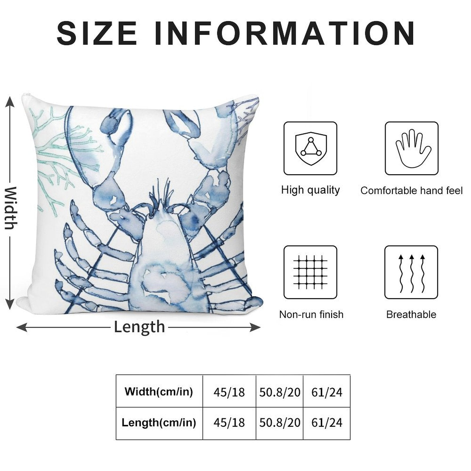 - Reinforced stitching along the edges prevents fraying and extends the life of your Coastal Lobster, Watercolor in Blues Pillowcase.