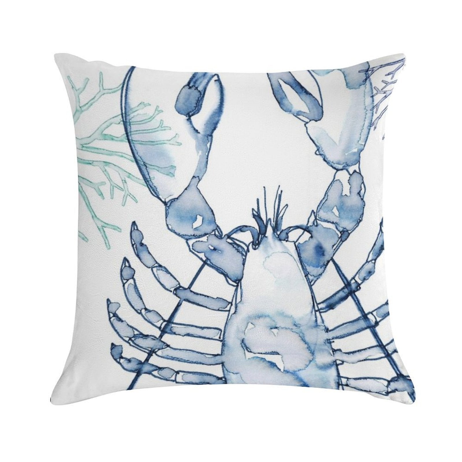 Coastal Lobster, Watercolor in Blues Soft Durable Construction Throw Pillow