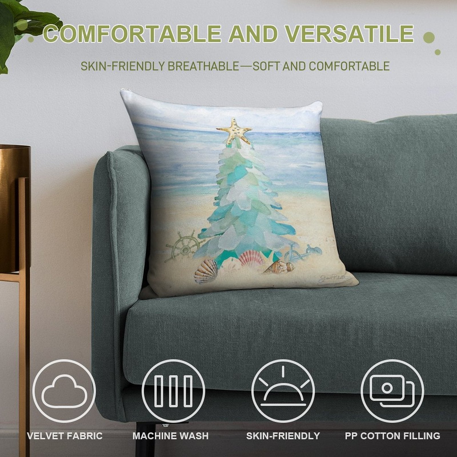Coastal Seaglass Christmas Tree B Soft Bedroom Essential Throw Pillow