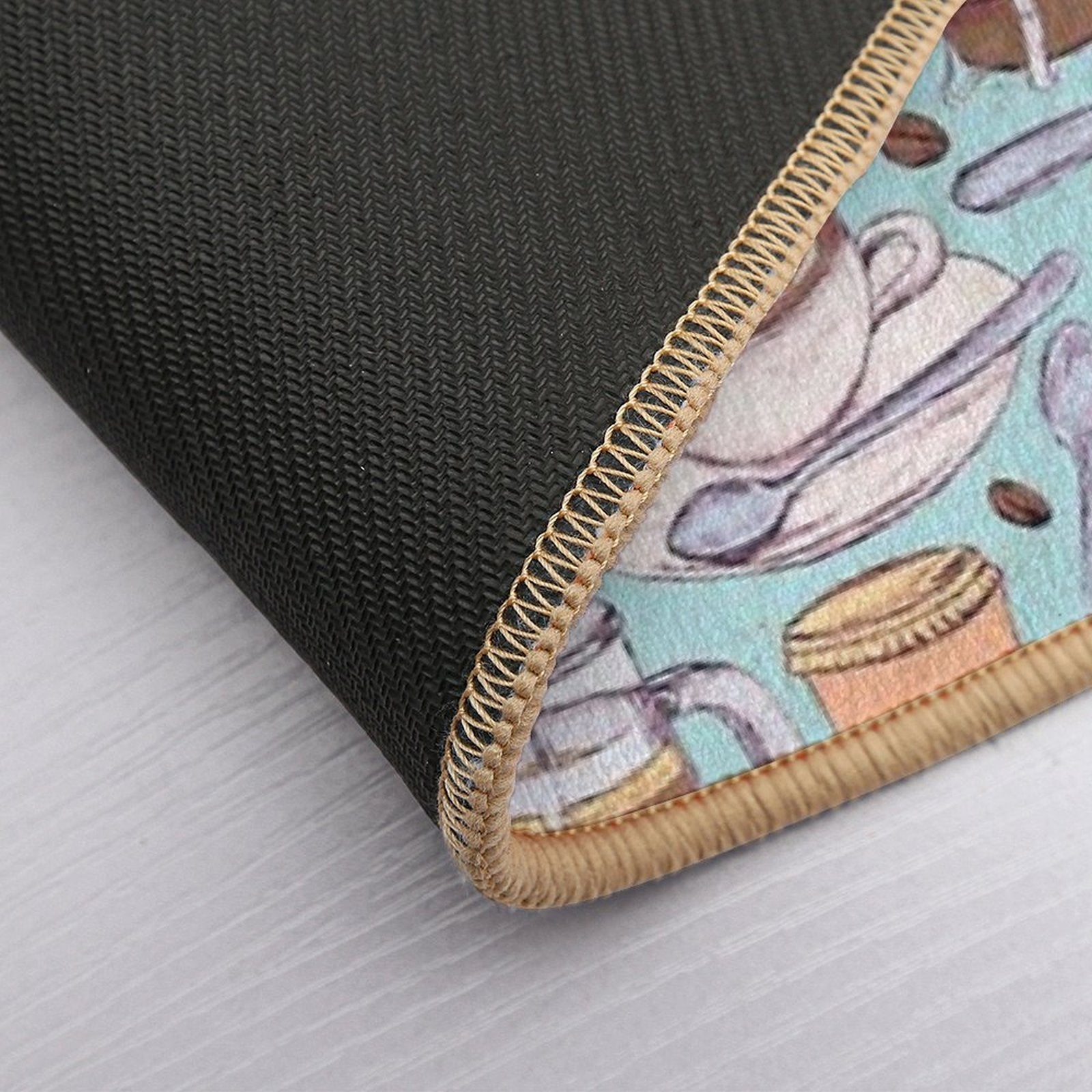 - Non-slip rubber backing grips floors securely, ideal for Coffee Love on Blue Mat placements on tiles, wood, or marble.