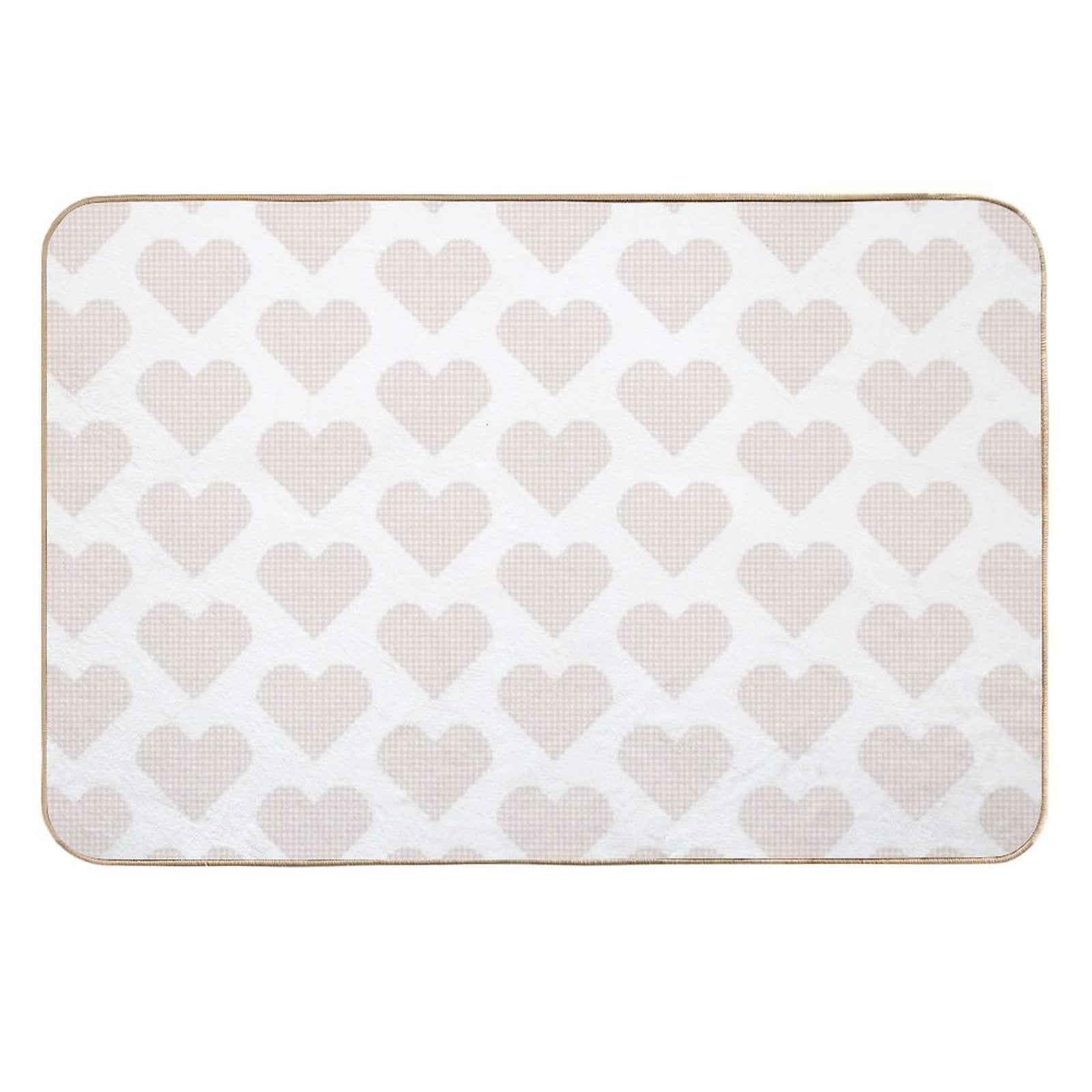 - Non-slip rubber backing grips floors securely, ideal for Coral Pink Heart Gingham Warmth Mat placements on tiles, wood, or marble.
