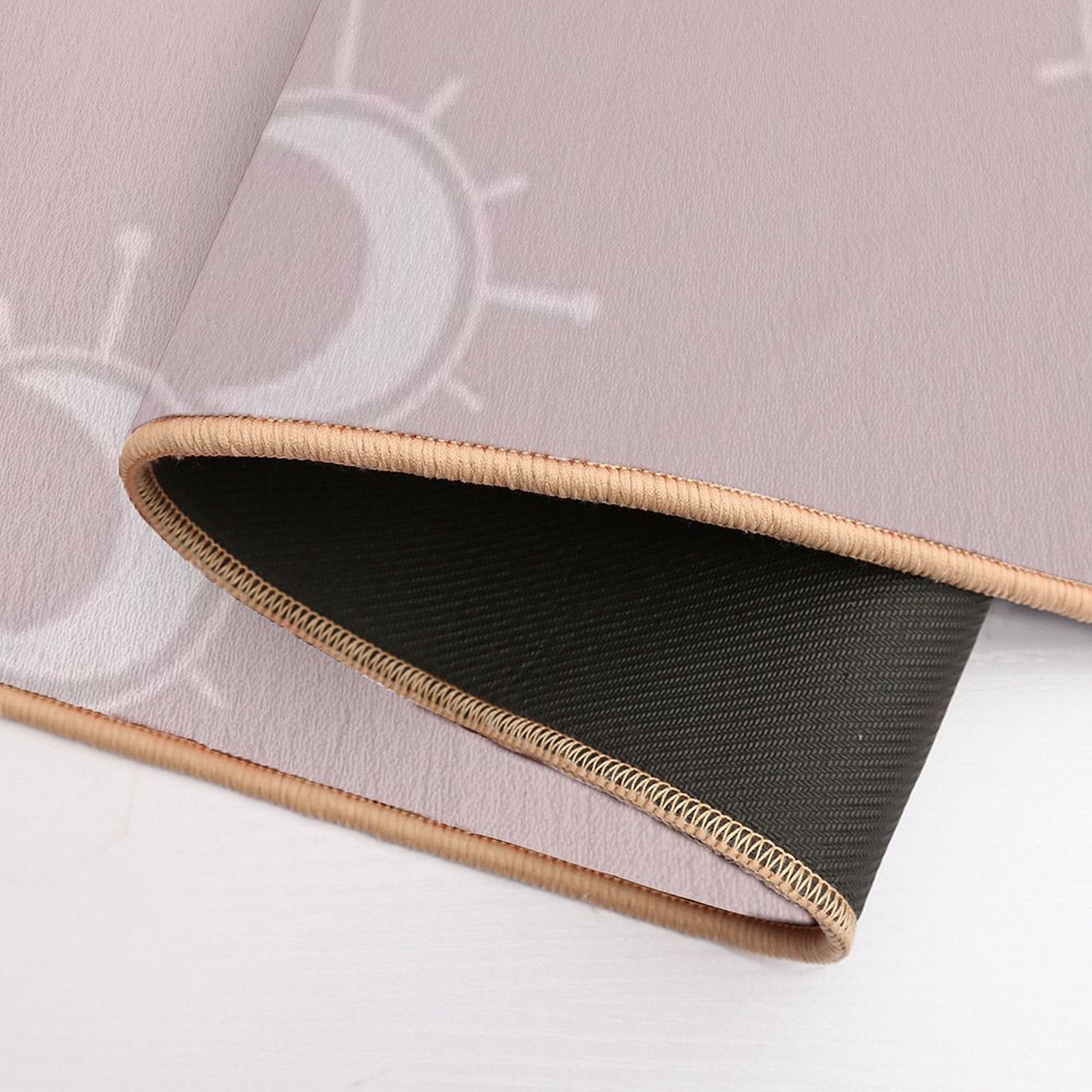 - Non-slip rubber backing grips floors securely, ideal for Cosmic Sun And Moon Design Soft Aesthetic In Muted Colors Gray Pink Mat placements on tiles, wood, or marble.