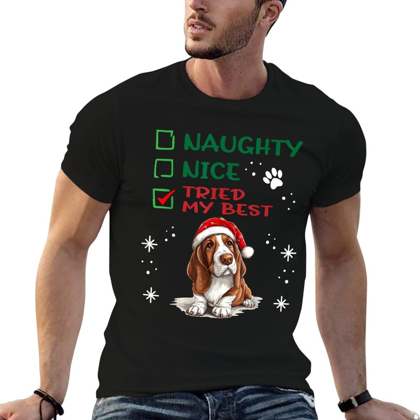 - Heat-transfer prints retain vibrant colors wash after wash, perfect for Cute Basset Hound Dog Christmas Naughty Nice Tried My Best for Men Women Kids casual outfits or statement streetwear.