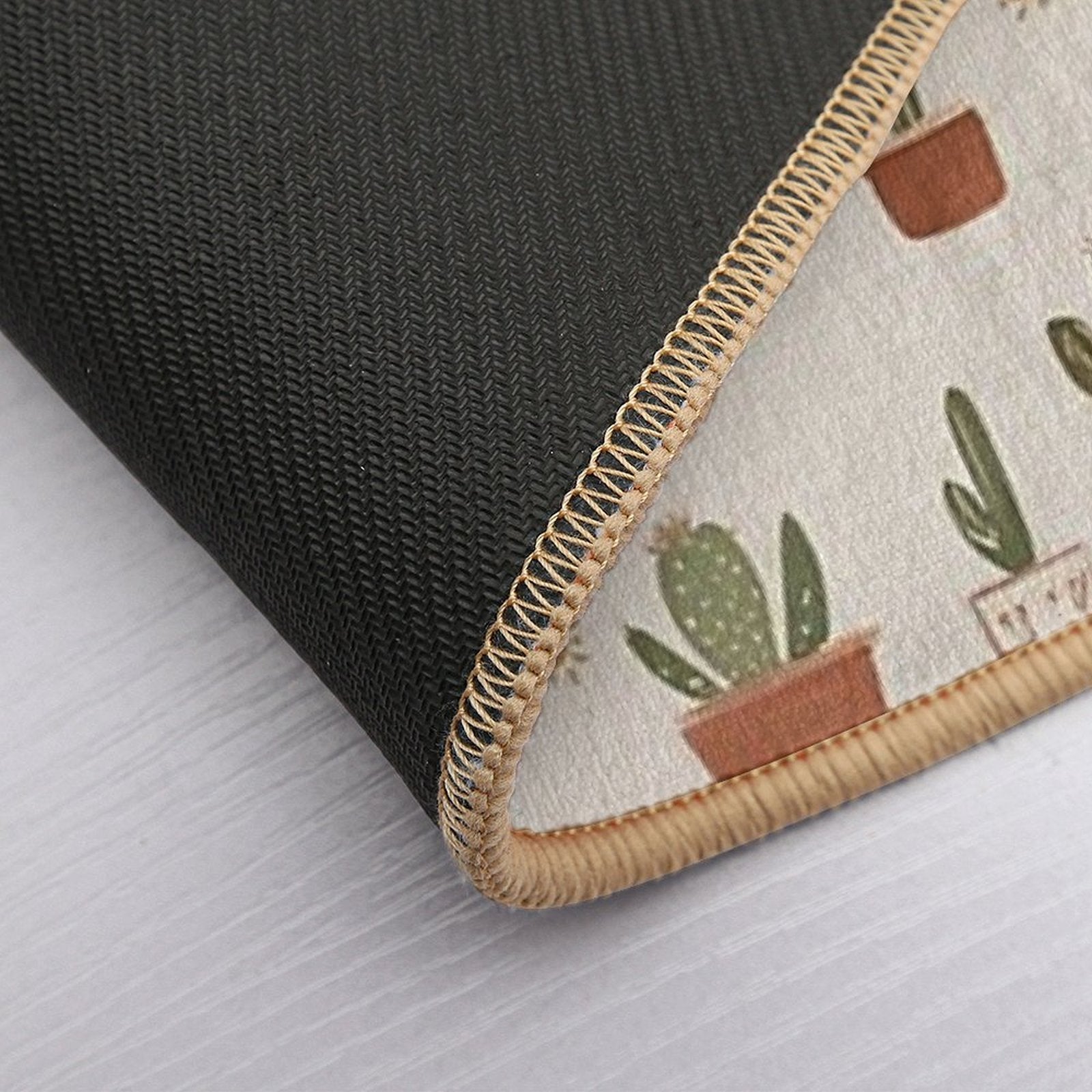 - Non-slip rubber backing grips floors securely, ideal for Cute Cactus Pattern – Terracotta Potted Plant Illustration Mat placements on tiles, wood, or marble.