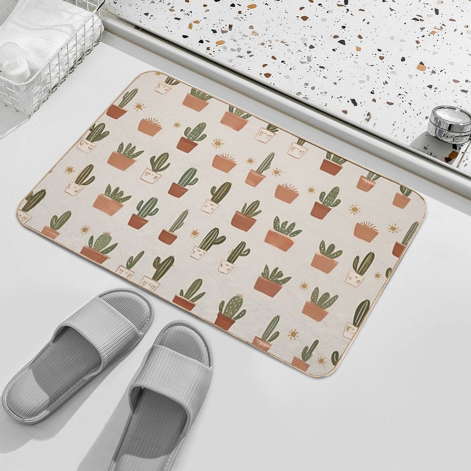 - Rapid-drying flannel soaks up water 3x faster than standard mats, preventing puddles in Cute Cactus Pattern – Terracotta Potted Plant Illustration bathrooms or poolside areas.