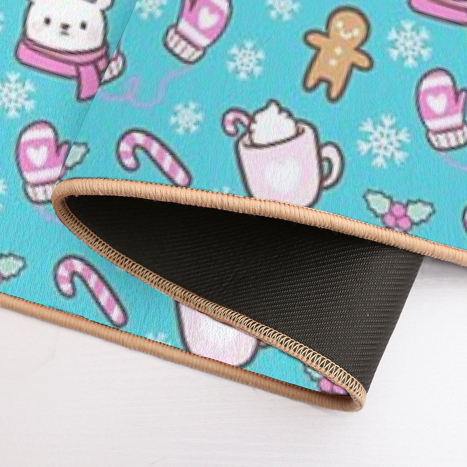 - Non-slip rubber backing grips floors securely, ideal for Cute Christmas Teal Nikury Mat placements on tiles, wood, or marble.