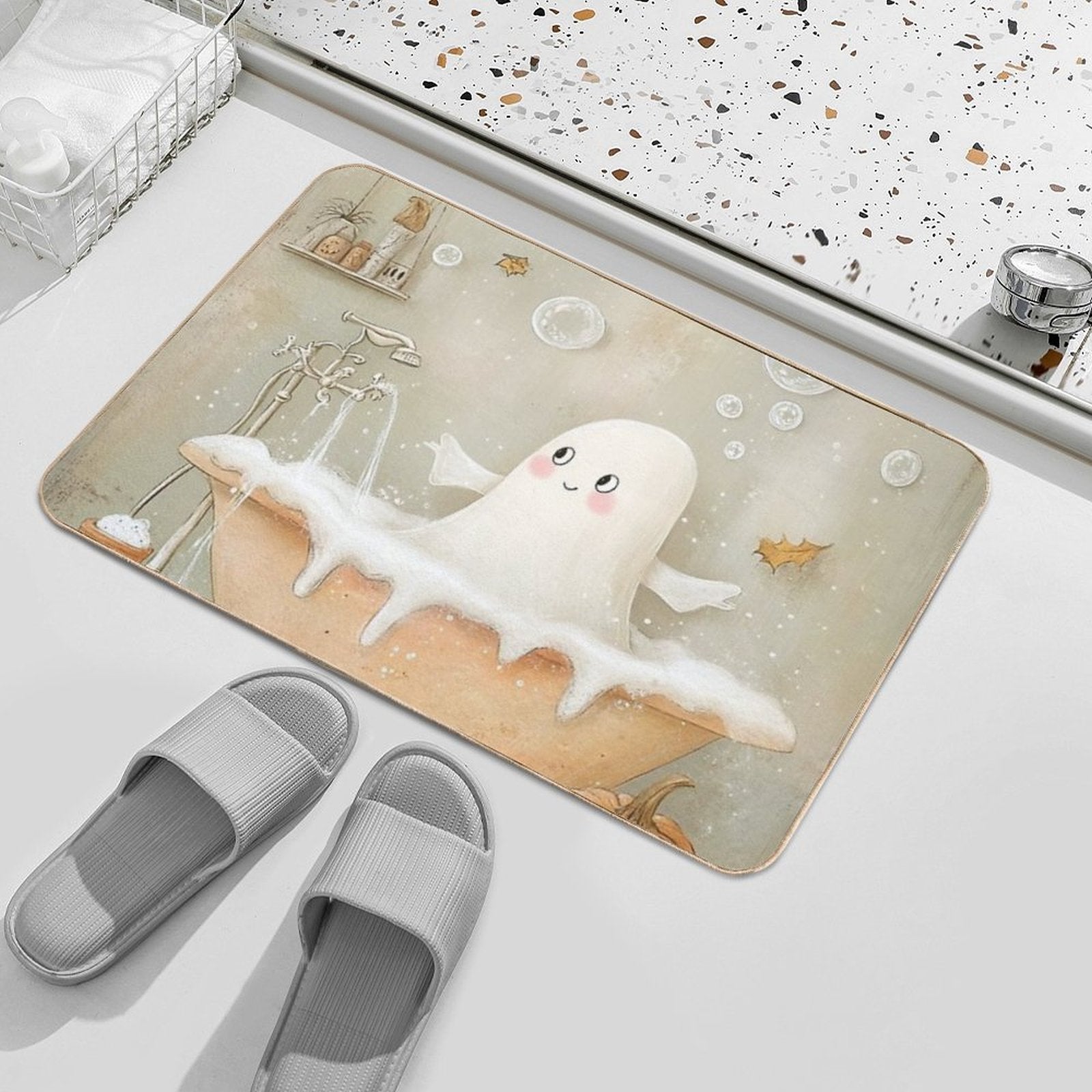 - Non-slip rubber backing grips floors securely, ideal for Cute Ghost Take A Bath Mat placements on tiles, wood, or marble.