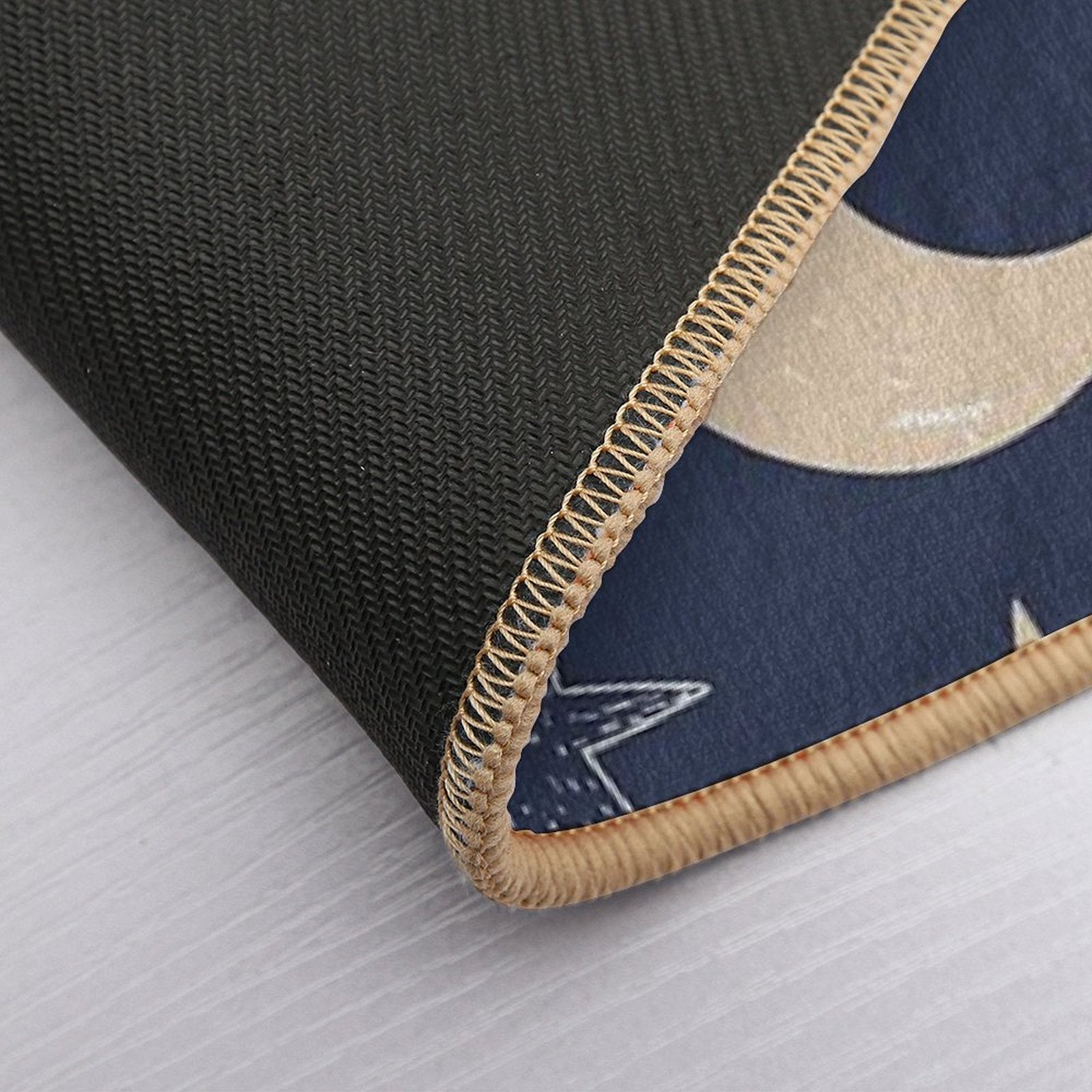 - Non-slip rubber backing grips floors securely, ideal for Cute Night Sky Pattern Moon, Clouds & Stars Kids Illustration Mat placements on tiles, wood, or marble.