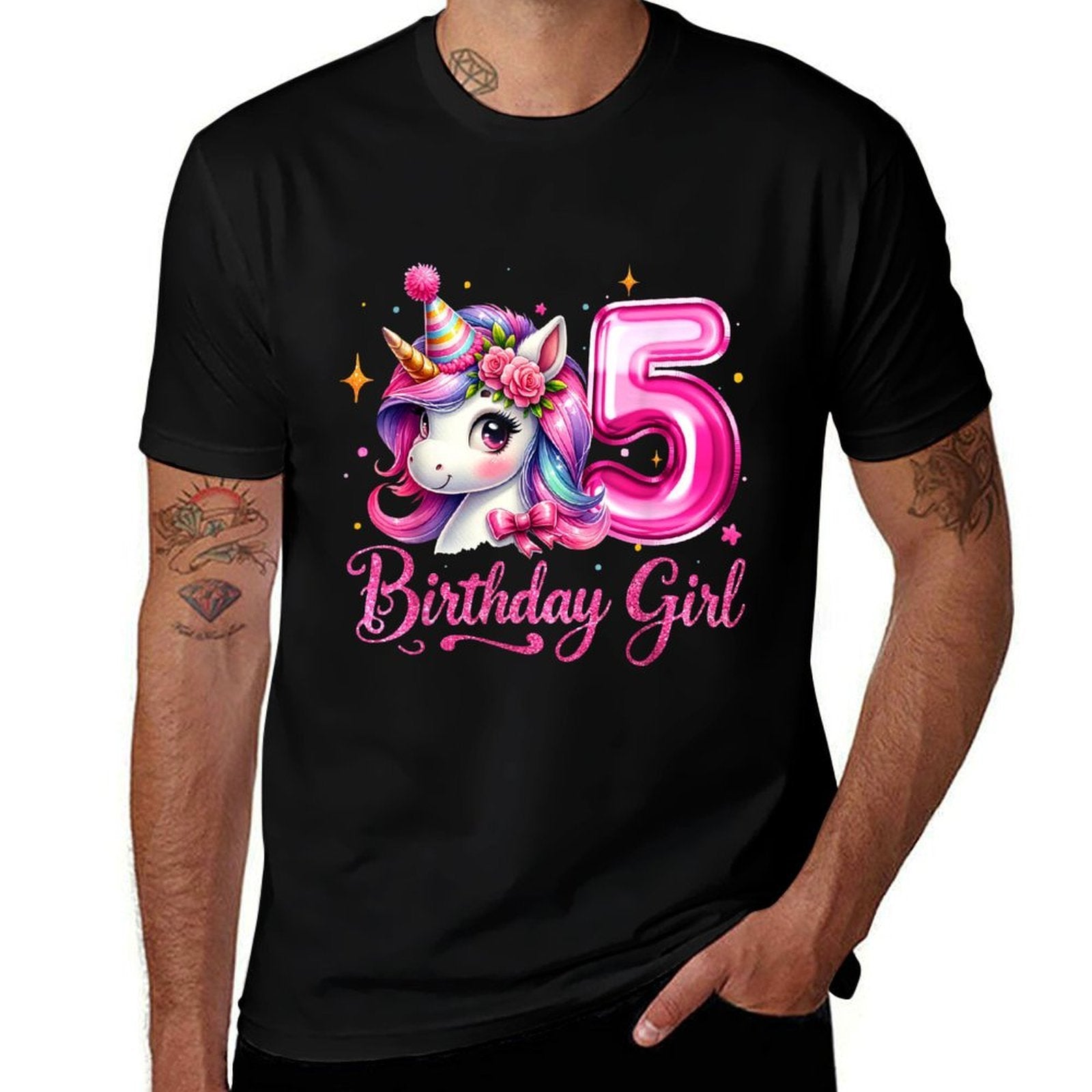 - Heat-transfer prints retain vibrant colors wash after wash, perfect for Cute Unicorn 5th Birthday 5 Years Old Birthday Girls Kids casual outfits or statement streetwear.