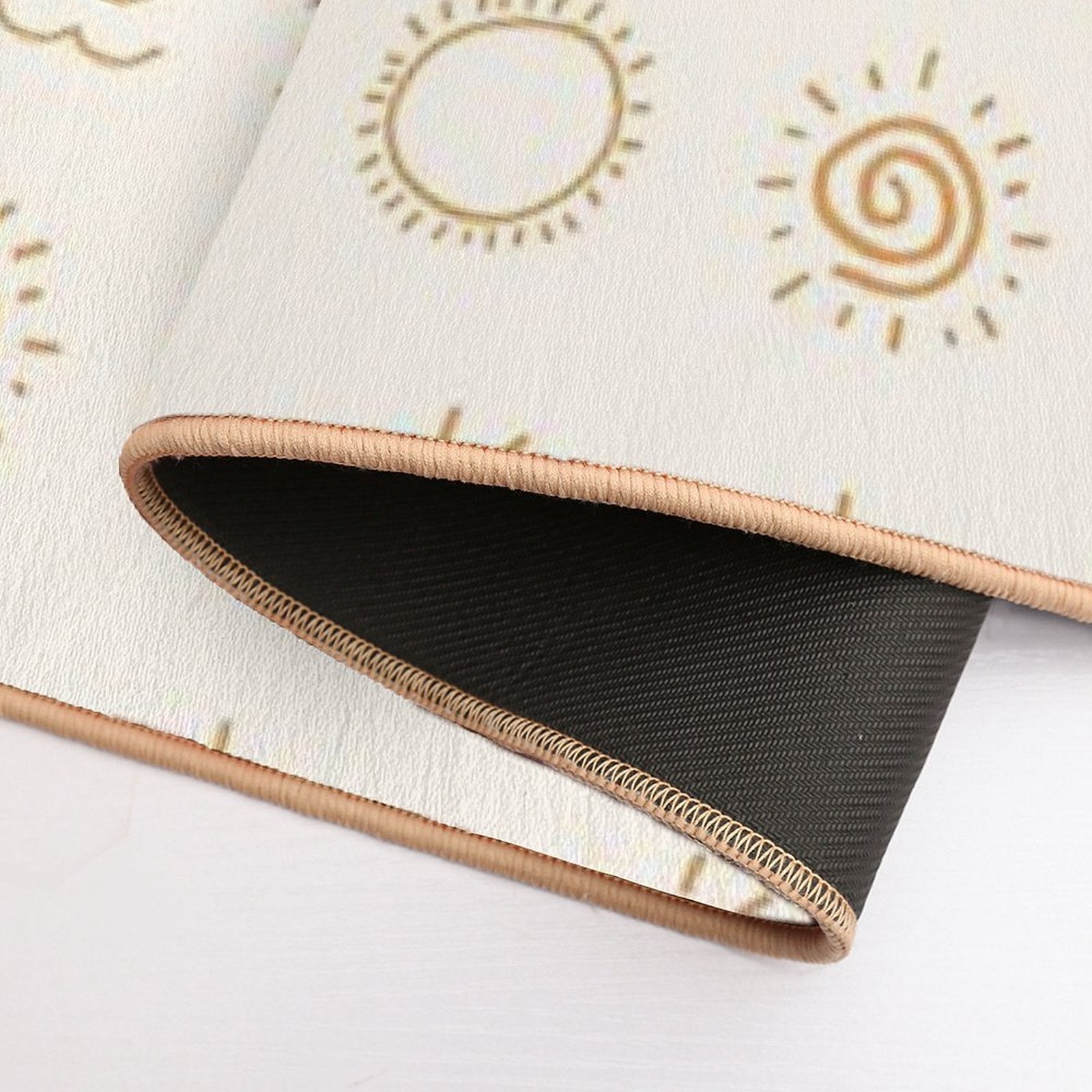 - Non-slip rubber backing grips floors securely, ideal for Different Suns Aesthetic Mat placements on tiles, wood, or marble.