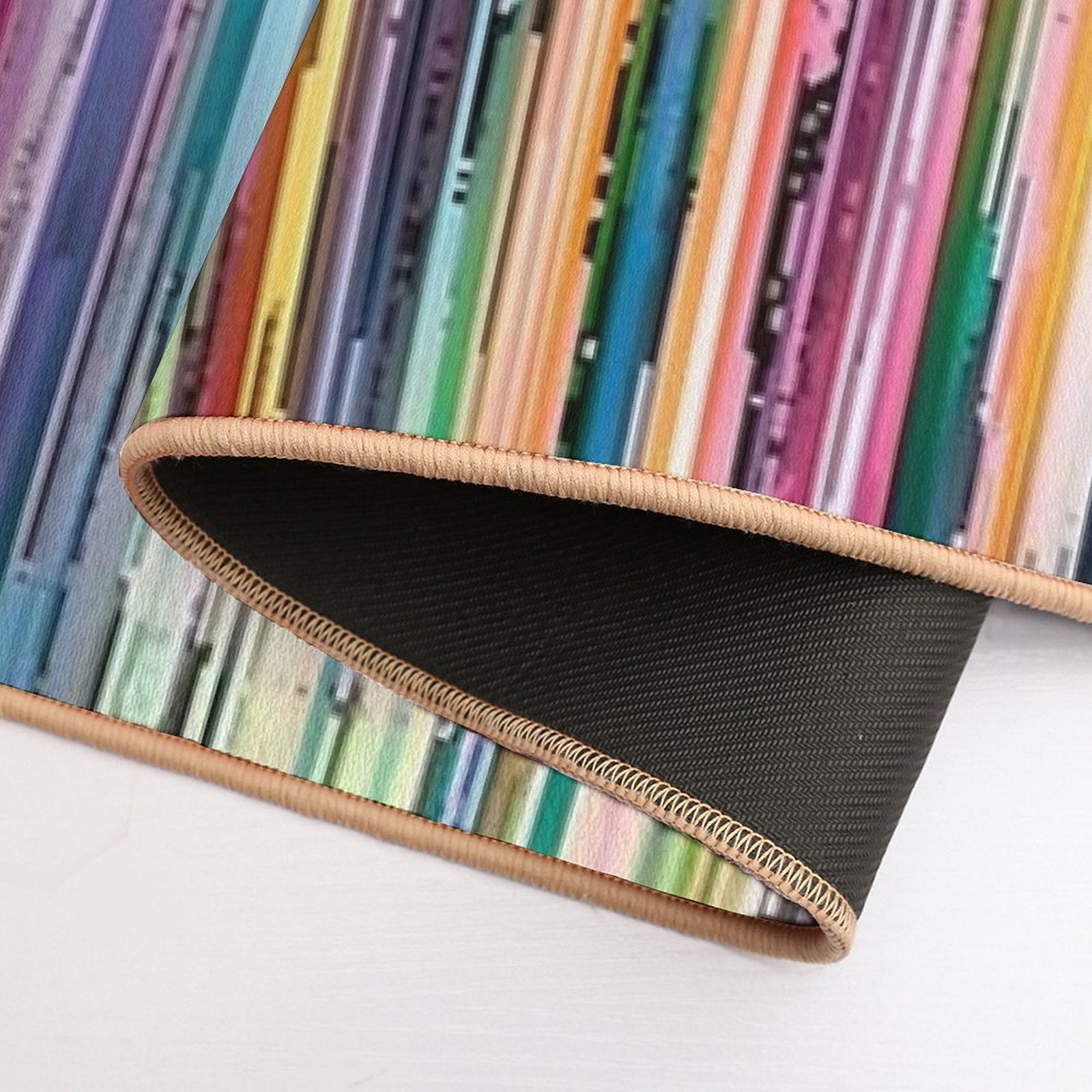 - Non-slip rubber backing grips floors securely, ideal for Distressed Wood Rainbow Vintage Stripes Mat placements on tiles, wood, or marble.