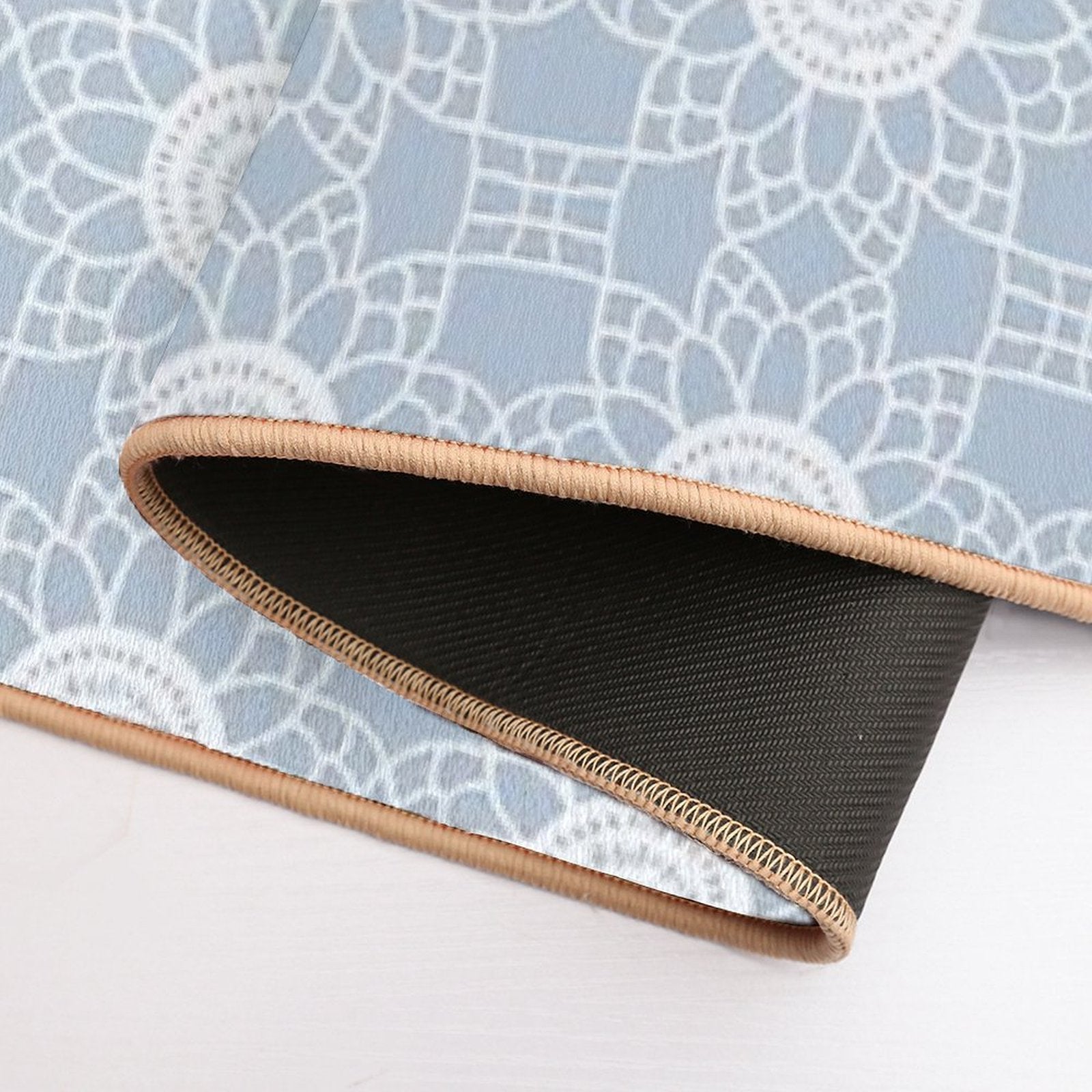 - Non-slip rubber backing grips floors securely, ideal for Doily - Grey Blue Mat placements on tiles, wood, or marble.