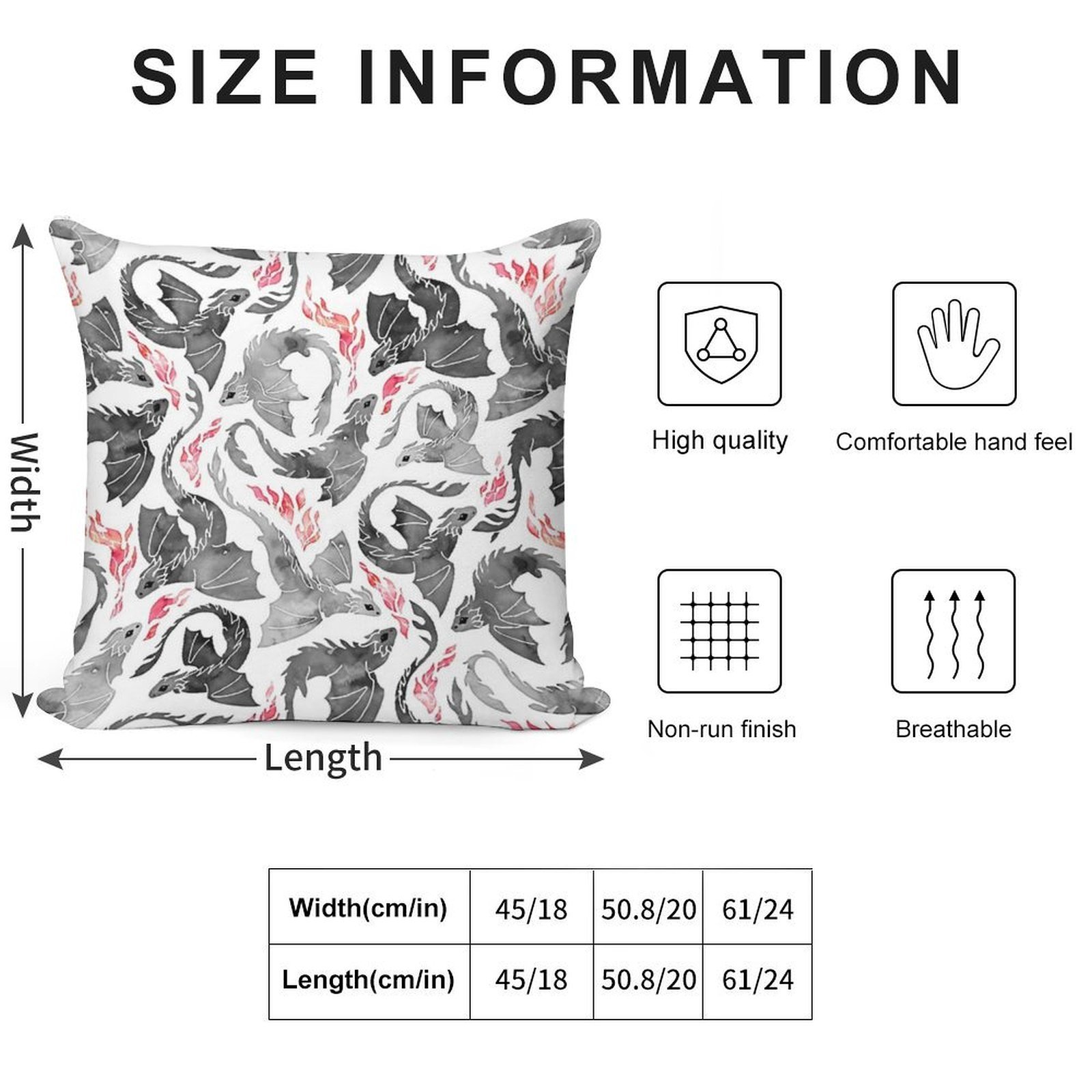 - Reinforced stitching along the edges prevents fraying and extends the life of your Dragon Fire Greys & Blacks Pillowcase.