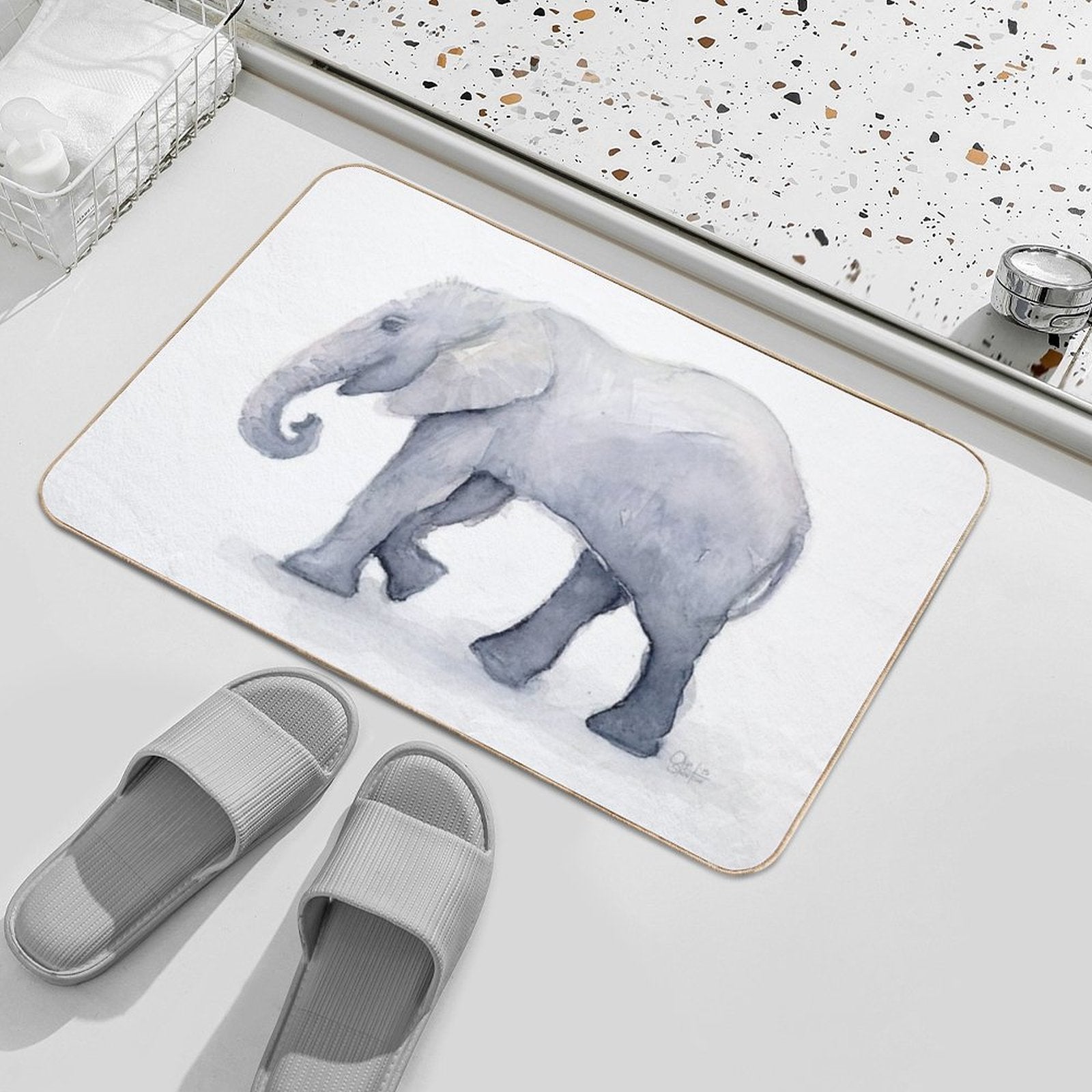 - Use as a vanity rug, guest suite accent, or mudroom defender – the Elephant Watercolor Mat adapts to any space.