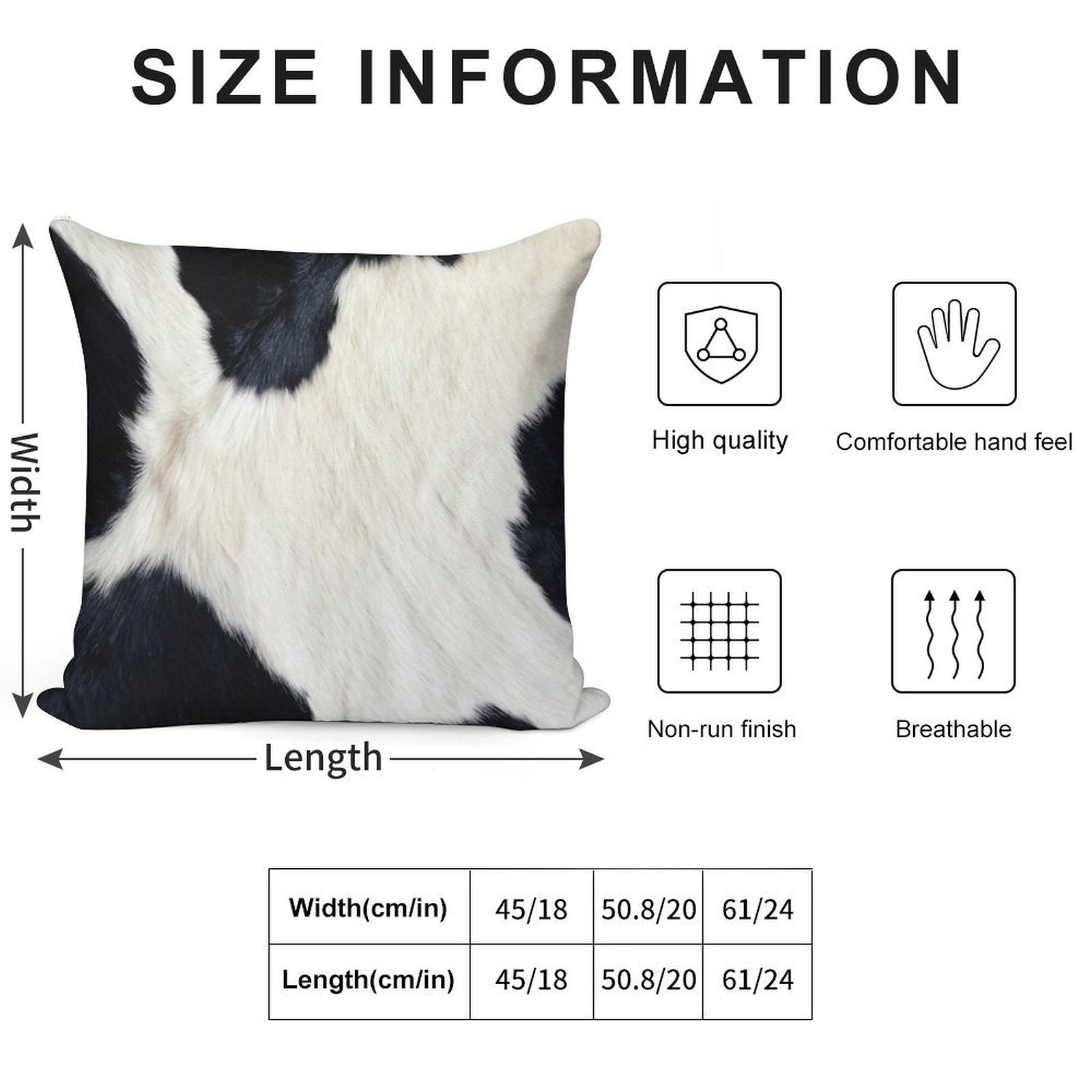 - Reinforced stitching along the edges prevents fraying and extends the life of your Faux Cowhide Black And White Pillowcase.
