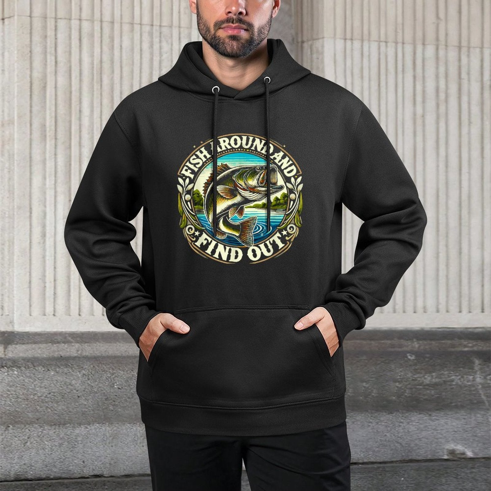 Fish Around And Find Out Funny Fishing Bass Dad Durable Construction Hoodie
