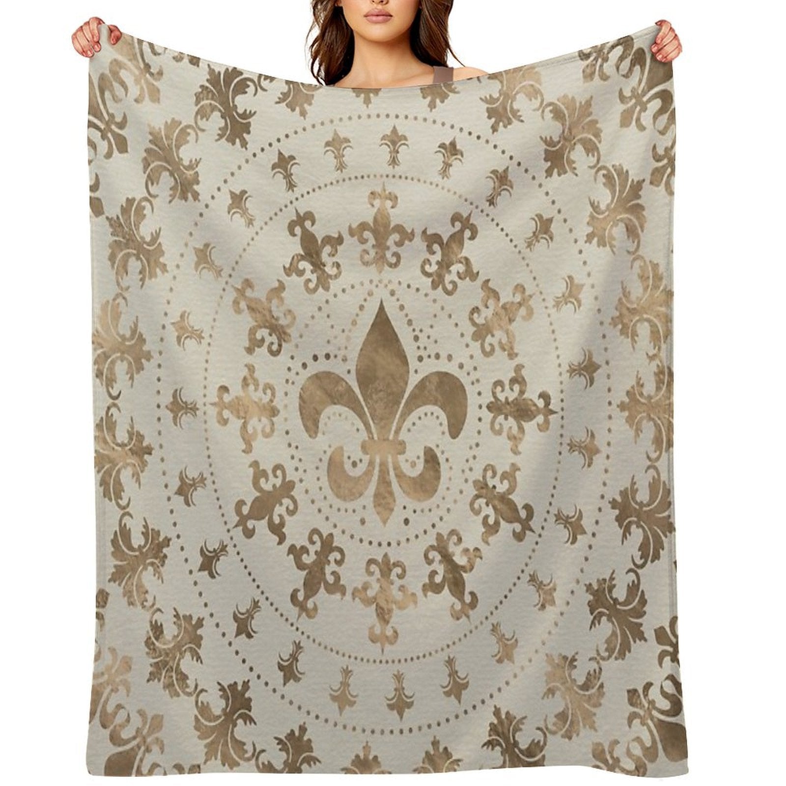 Fleur-de-lis Ornament Pastel Gold Sustainable Throw Blanket